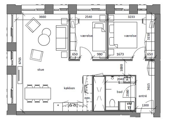 3 vær. lejlighed på 80 m²