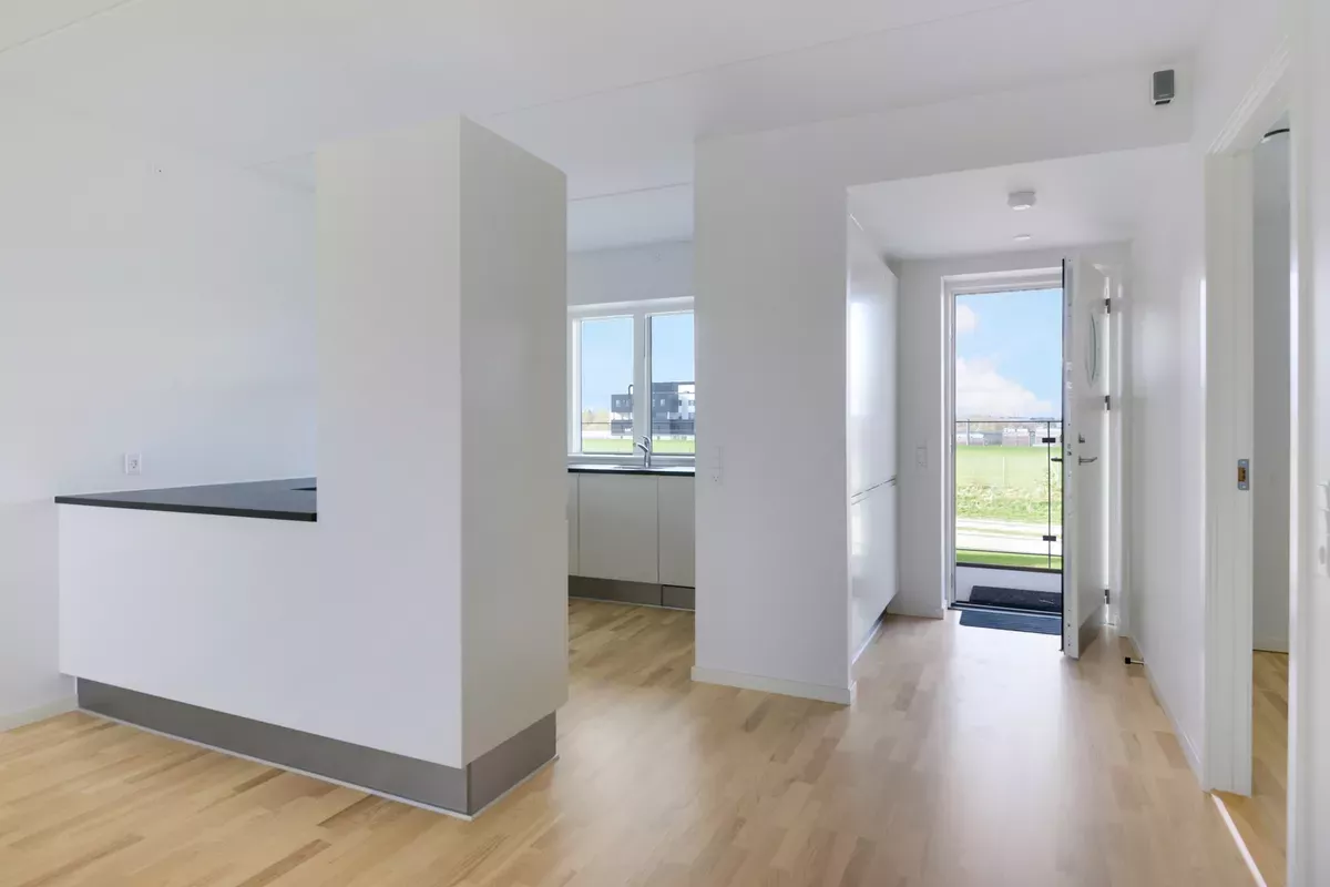 **Nybyggeri fra 2022 i Gistrup** Her får du en lys 2-værelses lejlighed med altan, beliggende i meget attraktivt område. Boligen er klar til overtagelse d. 1. maj. Det er lavet klar til at man kan installere en vaskemaskine og tørretumbler. I køkkenet er der induktionskogeplade og ovn samt plads til opvaskemaskine. Det er tilladt at holde 1 indekat i boligen. Det er ikke tilladt at holde hund. Vil du opleve boligen? Udfyld formularen herunder – så kontakter vi dig hurtigt