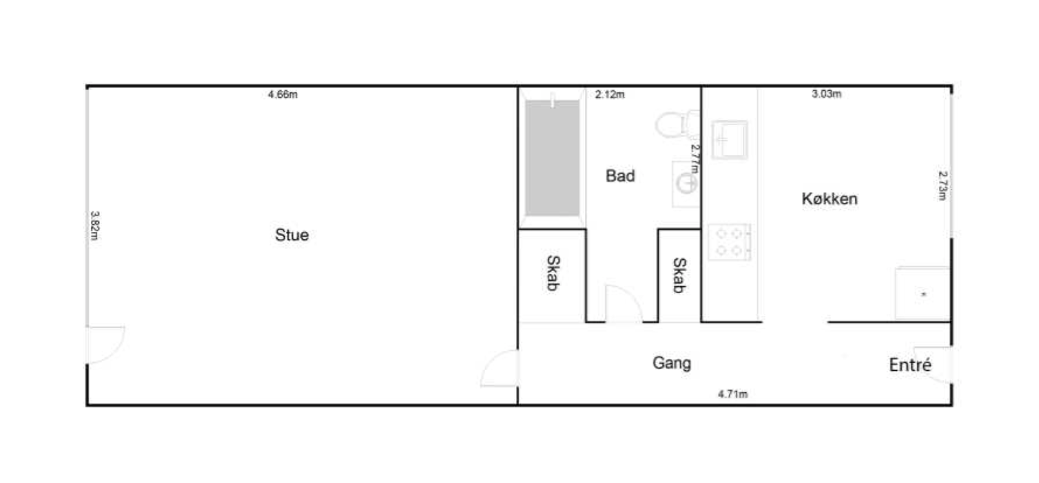 1 vær. lejlighed på 42 m²