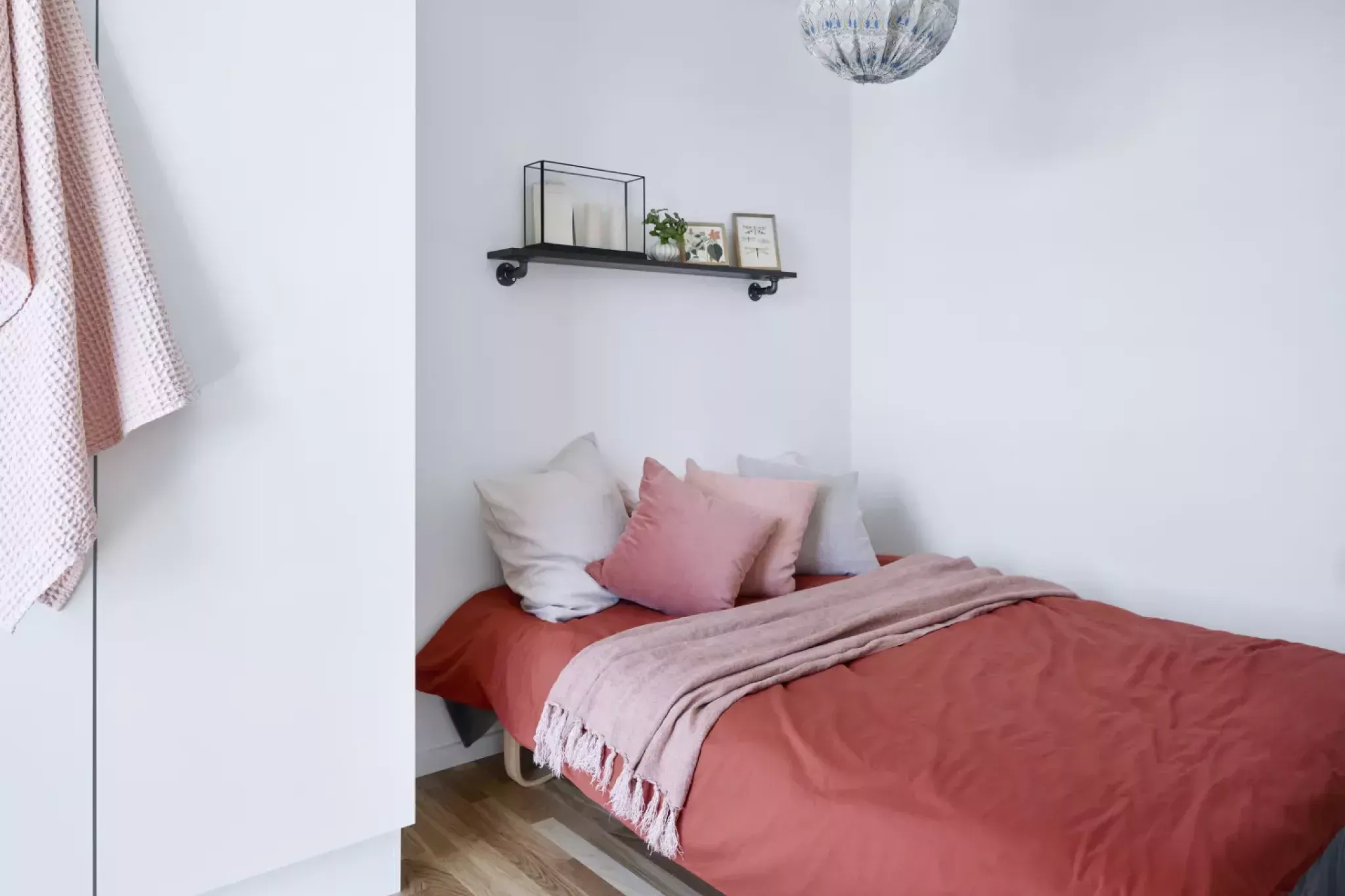 The apartment includes a lovely and spacious bedroom with a wardrobe for storage or clothes. From the bedroom, you have direct access to a charming balcony – the perfect place to enjoy the sun on warm days.