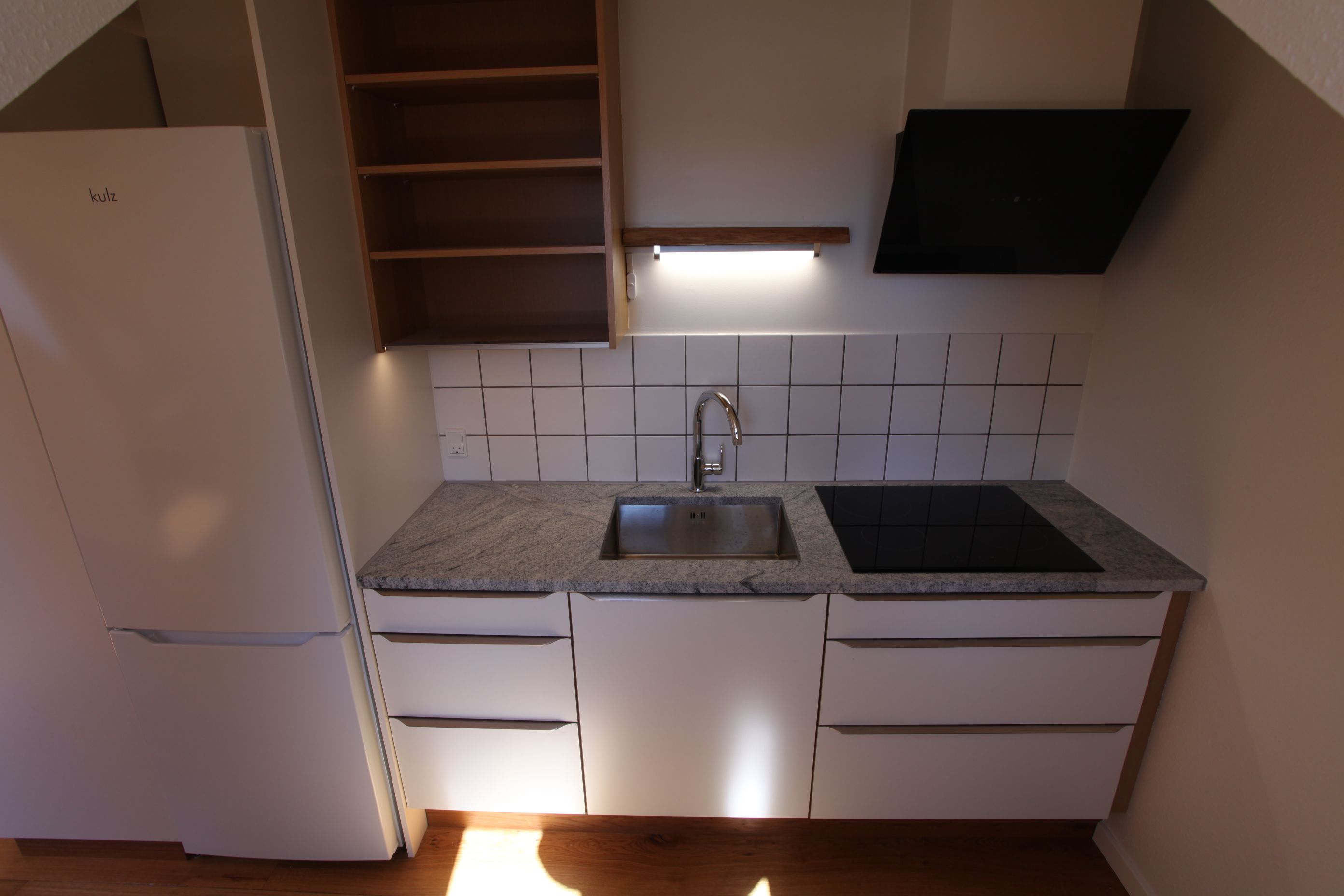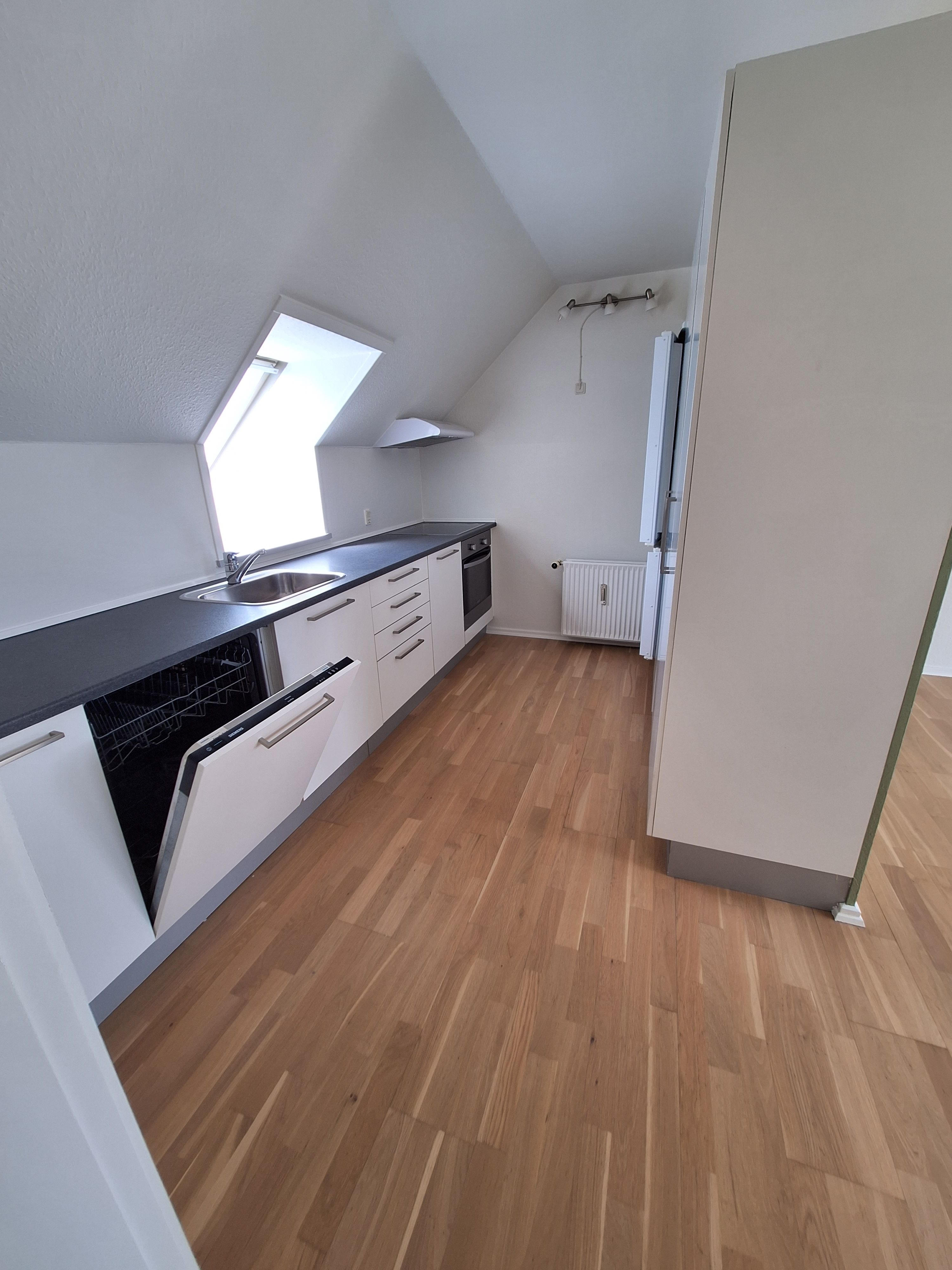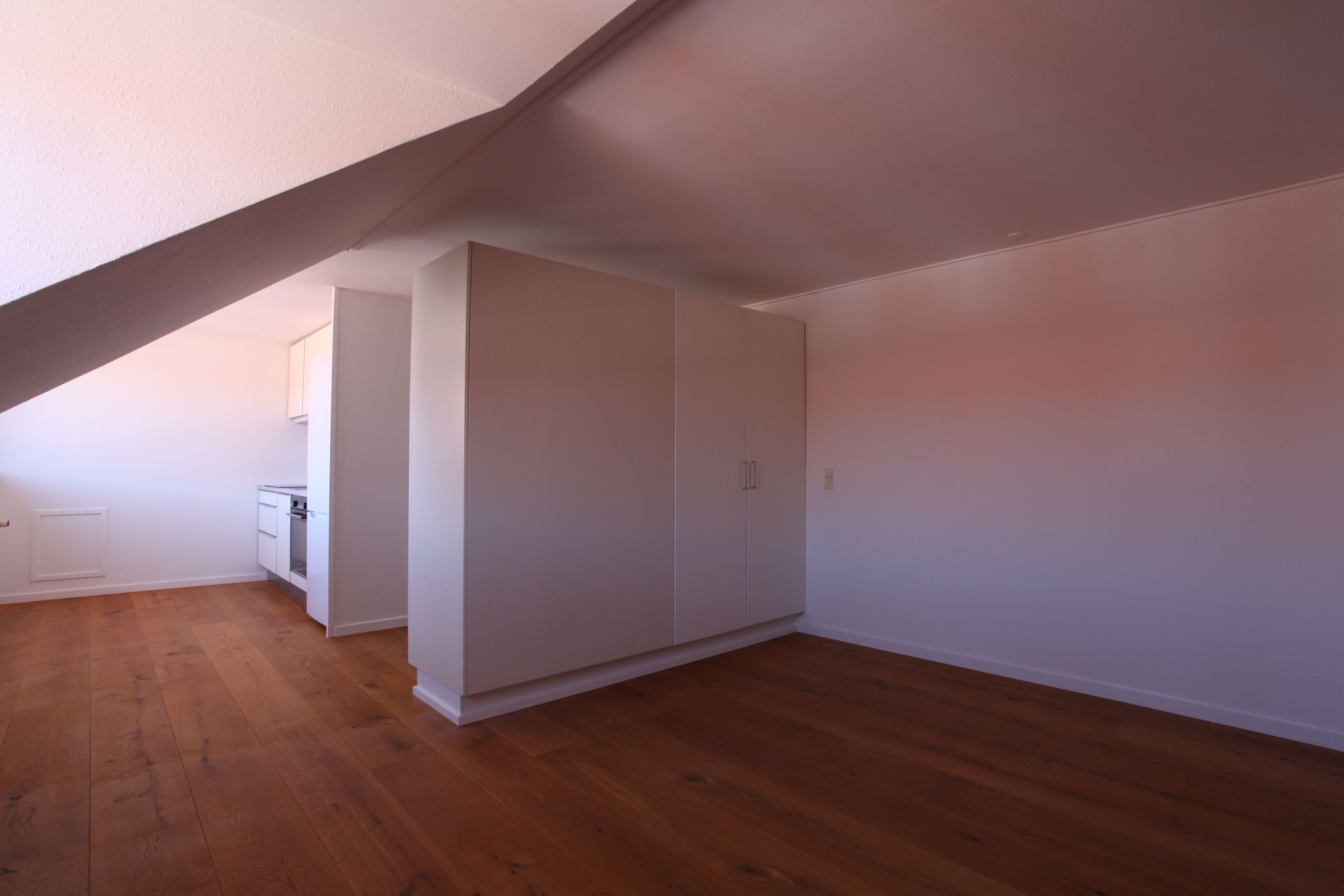 Lys og flot 1-værelseslejlighed i velbeliggende ejendom i Hammel. Sydvendt facade. I hele lejligheden findes brede gulve i massiv eg. Nyt badeværelse med gulvvarme og flot nyt køkken. Adgang til stor tagterrasse med udsigt til bl.a. kirketårnet og den gamle bank.