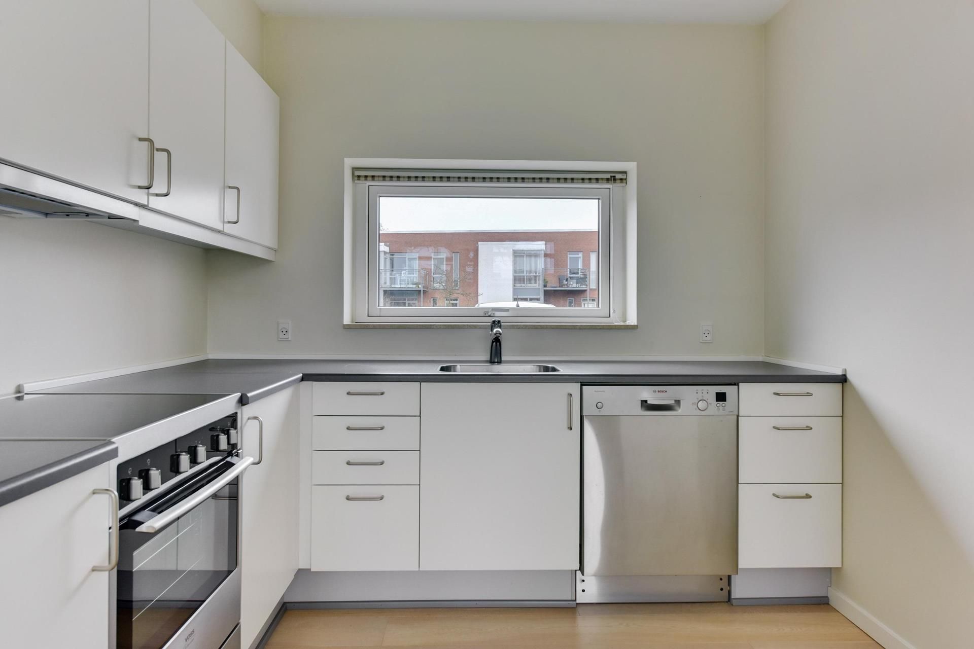 Lejligheden byder på et rummeligt opholdsrum med åbent køkken, hvor der er plads til både madlavning og hyggelige stunder. Fra stuen er der direkte udgang til en stor, solrig terrasse – et sandt frirum, hvor du kan nyde morgenkaffen eller aftensmaden med en smuk udsigt over søen og det omkringliggende grønne landskab.