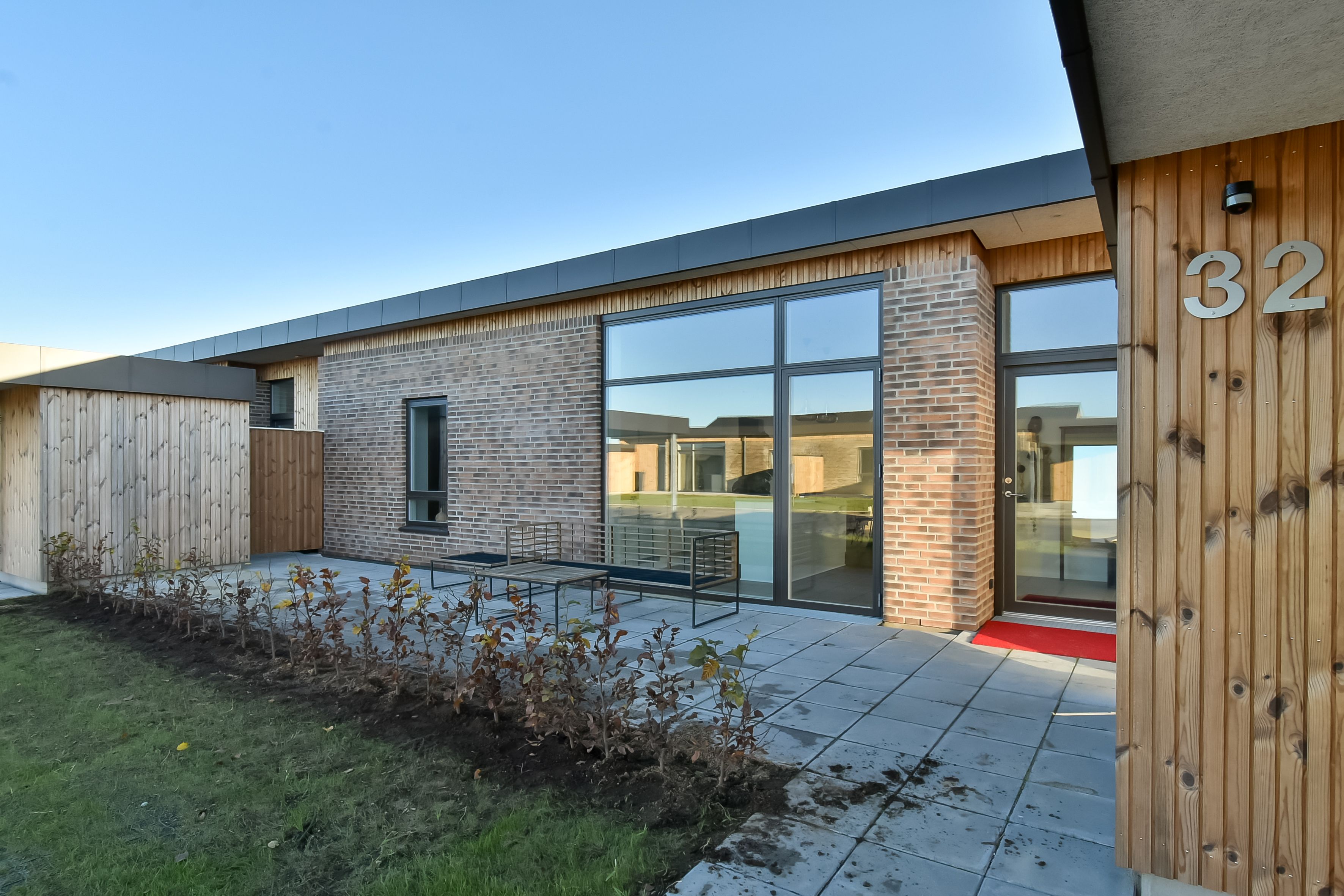 I det grønne, udendørs gårdmiljø finder du både grill-område, sansehave, petanquebane og en 150 m2 opvarmet vinterhave, hvor du kan nyde de grønne omgivelser og få en hyggelig snak med naboerne.