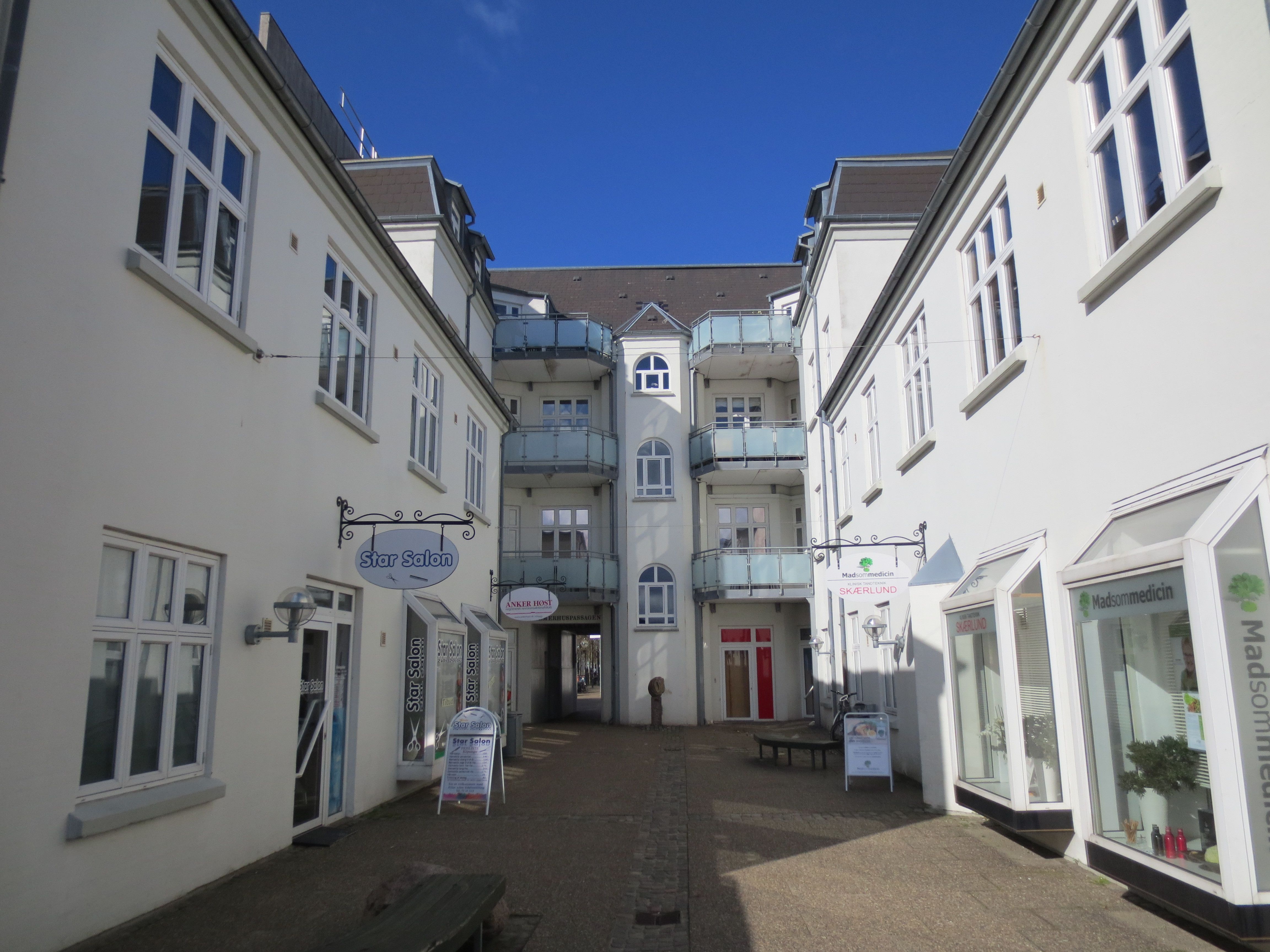 Placeringen centralt i byen gør det let at undvære en bil. Ejendommen råder over eget privat fælles parkeringsområde på den ene side af ejendommen, mens der er offentlige parkeringsmuligheder på modsatte side. Til lejligheden i ejendommen, hører ligeledes et privat depotrum med, i kælderen.