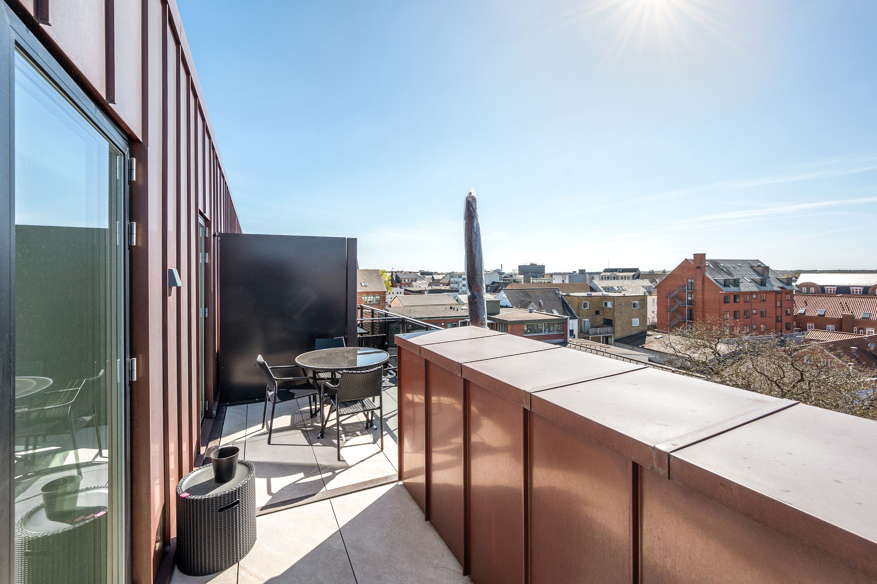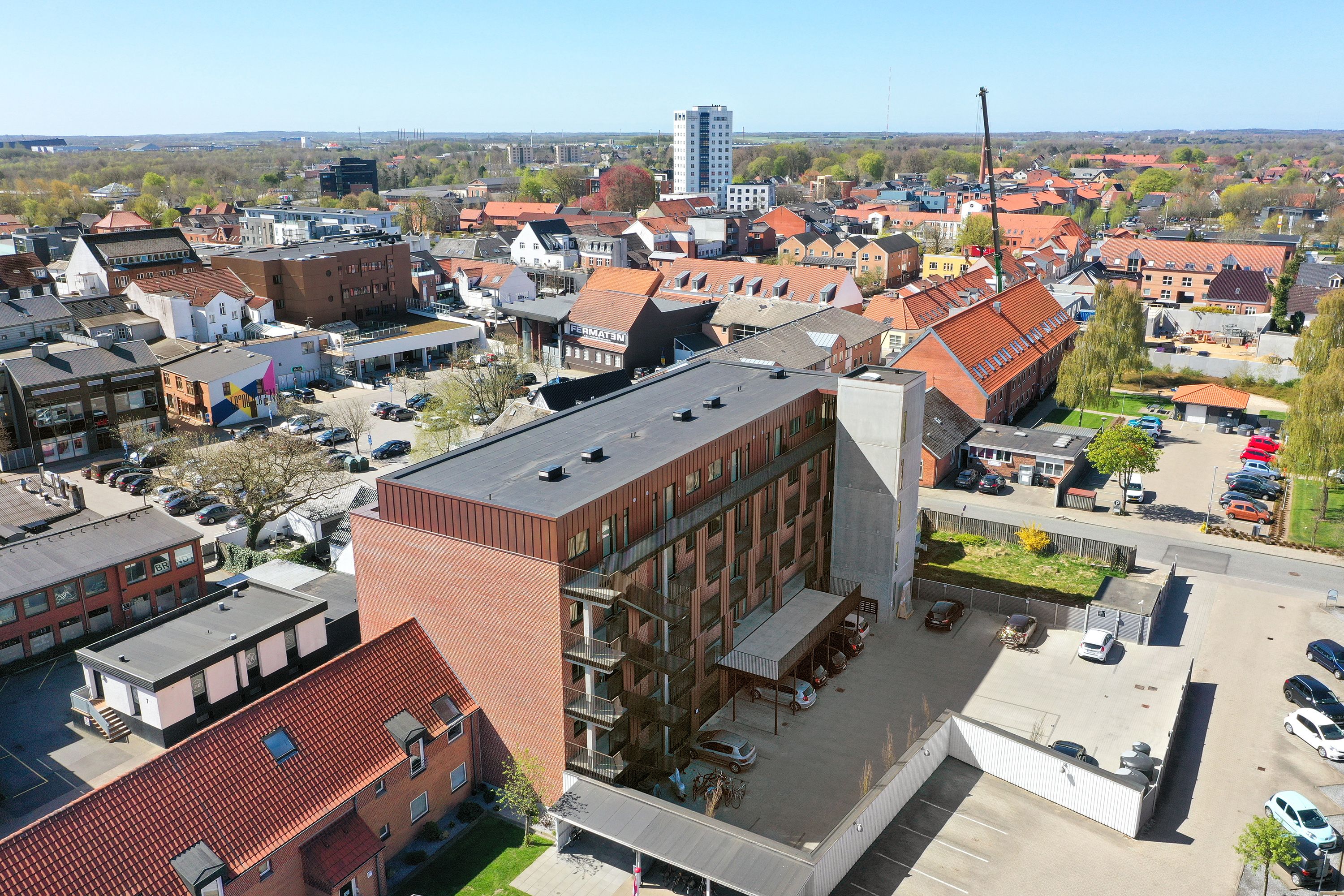Ejendommen Herning SKY er ikke bare et sted at bo - det er et nyt symbol på moderne livsstil og komfortabelt byliv. Denne imponerende bygning på 15 etager, med sine elegante kobberfarvede facader, står majestætisk i Herning Syd og tilbyder enestående udsigt over byen og det smukke naturområde Knudmose. Med 17 lyse altan-boliger og en placering mellem naturens ro og byens pulserende liv, er Herning SKY det perfekte valg for dem, der søger det bedste af begge verdener. Der kan søges dispensation til at medbringe ét husdyr. Det er ikke tilladt at anskaffe/genanskaffe husdyr når man bor i ejendommen. Boligerne Træd ind i et univers af stil og kvalitet, når du åbner døren til en af Herning SKYs moderne lejligheder. Disse stilrene 3-værelses boliger på 116-125 kvm er designet med omhu og sans for detaljer. Her får du et lækkert køkkenalrum, der smelter sammen med stuen og skaber et lyst og rummeligt opholdsområde - det ideelle sted til både afslapning og underholdning. Med to velindrettede soveværelser, et rummeligt badeværelse og et praktisk bryggers/grovkøkken, er der tænkt på alt, hvad du har brug for til en behagelig og bekvem hverdag. Området Herning SKYs placering giver dig nem adgang til alt, hvad Herning har at byde på. Fra din nye bolig har du kun få minutters kørsel til supermarkeder, skoler og institutioner, og Herning station ligger mindre end en kilometer væk. Uanset om du foretrækker en afslappende gåtur i det naturskønne Knudmose eller en shoppingtur i Herning midtby, har du det hele lige ved hånden. Med Jyske Bank Boxen, Herning Messecenter og MCH Arena i nærheden er der også rig mulighed for kulturelle oplevelser og underholdning. Velkommen til Herning SKY - hvor moderne lejligheder møder en livlig bykultur og naturskønne omgivelser. Her venter en unik og indbydende oase, hvor du kan skabe dine egne mindeværdige øjeblikke i Herning Syd. OBS: Billederne er af en prøvebolig og dermed vejledende.