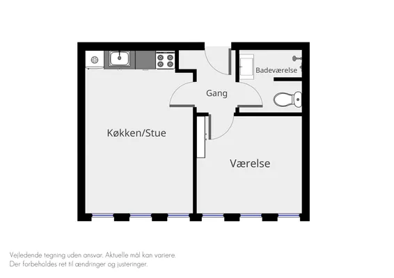 2 vær. lejlighed på 33 m²