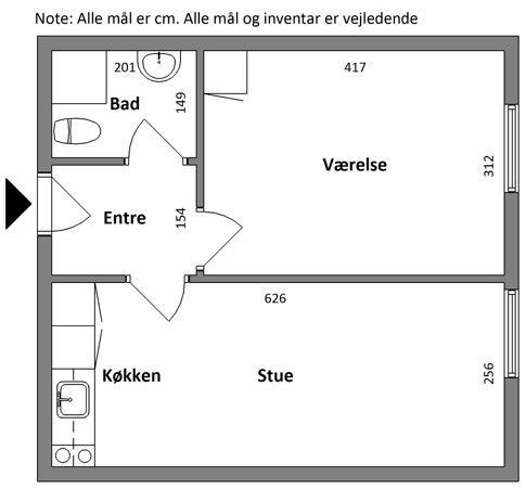 2 vær. lejlighed på 40 m²