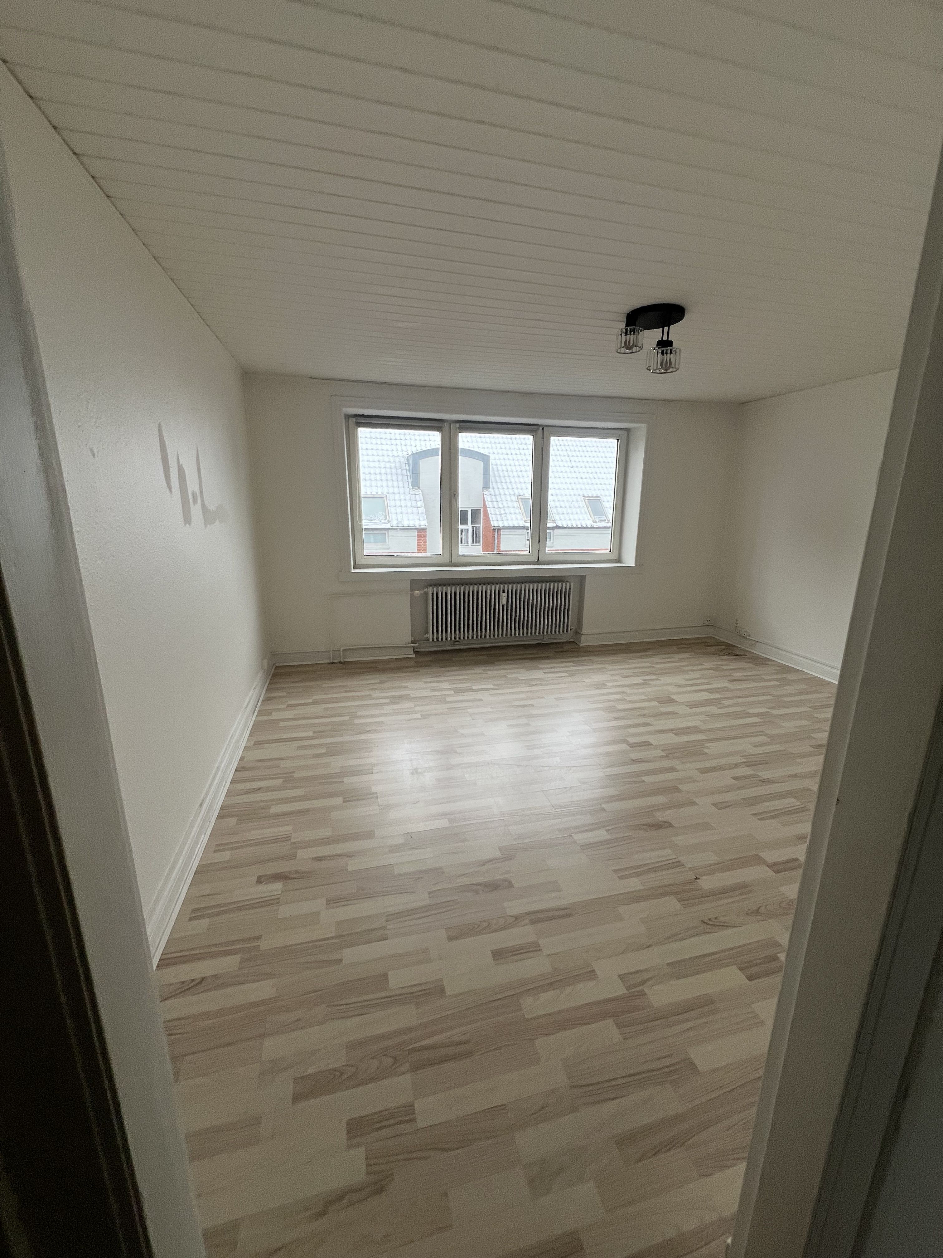 lejlighed er total nyrenoveret og indeholder, nyt flot HTH køkken med alt i hvidevare, flot hvid pigmenteret ege bordplade.
