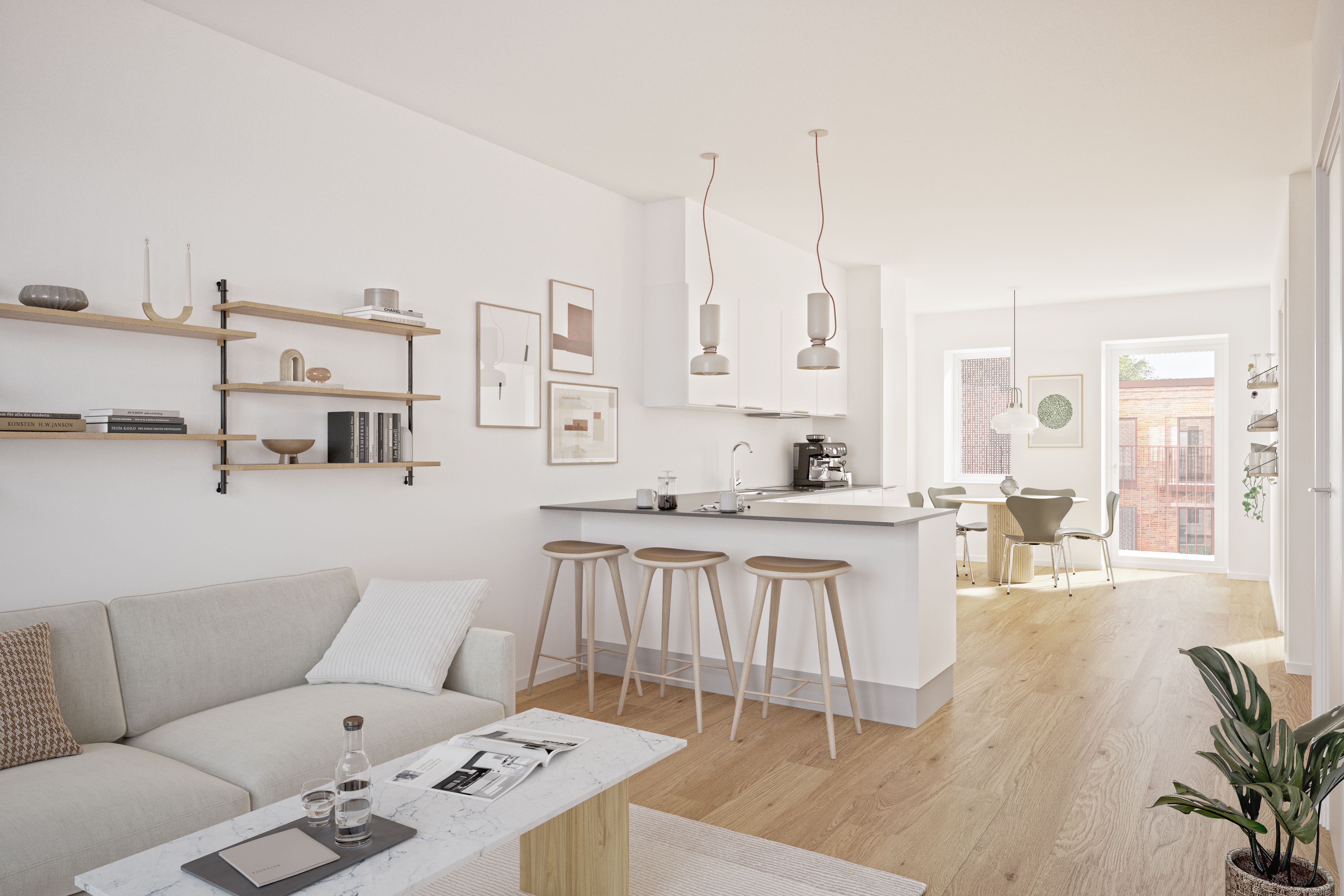 Drømmer du om at bo i en moderne og nyopført lejlighed? Så er Wedellsparken i Tjørring lige noget for dig!🏡 I denne 2 værelses lejlighed får du: - Stort lyst køkken-alrum - Mulighed for at have dit husdyr med🐶 - Fælles parkeringsplads - HTH Køkken med alt i hårde hvidevarer - Badeværelse med vaskemaskine og tørretumbler😊 - Der indlægges fiber i boligen Velkommen indenfor i denne 2 værelses lejlighed. Denne type lejlighed har en lidt større stue og soveværelse end boligtype A. Nydelig velkomst Når du træder ind i lejligheden, bliver du budt velkommen gennem en entré med plads til opbevaring af overtøj og fodtøj. Åben køkken i forbindelse med stue Træd ind i denne charmerende toværelses lejlighed, hvor køkkenet og stuen smelter sammen i en harmonisk enhed. Den åbne planløsning skaber et luftigt miljø med plads til et spisebord. Køkkenet er lyst og udstyret med moderne hårde hvidevarer, der gør madlavningen til en fornøjelse. I forlængelse af køkkenet har du plads til et spisebord med fast plads til 4 personer, og et hyggeligt tv-hjørne med god plads til sofa Lejlighedens soveværelse Ved lejlighedens entré finder du soveværelset, her finder du plads til en seng og et skrivebord. Badeværelse Lejlighedens badeværelse er holdt i en enkel og moderne stil. Det indeholder en bruseniche, toilet, håndvask samt en vaskesøjle med både vaskemaskine og tørretumbler.