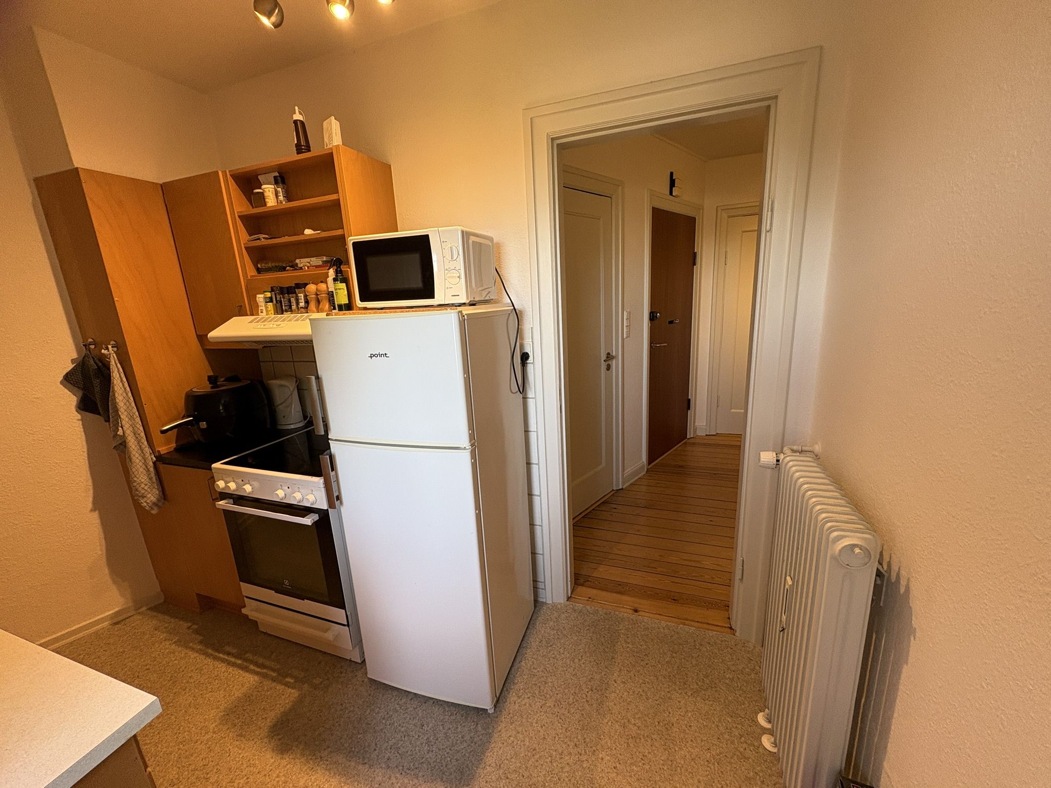 Lejligheden fordeler sig på 3 gode værelser samt lille køkken og toilet med bruseniche og gulvvarme.