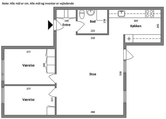 I denne treværelses lejlighed får du: