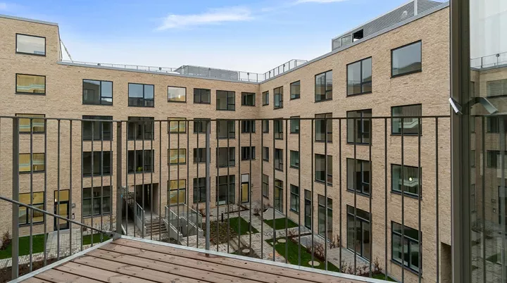 Fra alle boliger er der udsyn til det grønne fællesareal og det hyggelige naboliv, der udfolder sig omkring områdets opholdskroge.