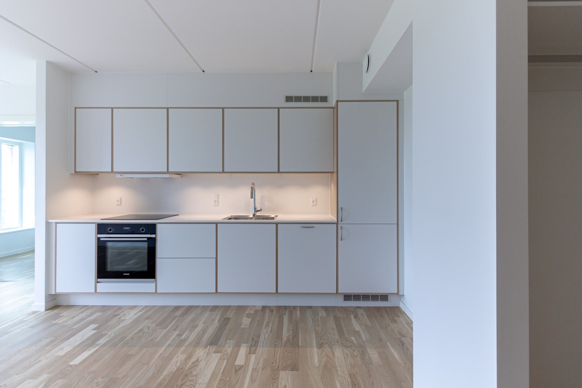Køkkenet fra Invita er holdt i lyse farver og fuldt udstyret med hårde hvidevarer, som gør madlavningen til en leg.