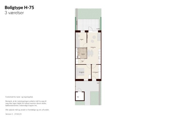 Eksklusiv lejlighed beliggende i smukke omgivelser ved Bygholm Sø i Horsens Brahesbakke består af 12 punkthuse med i alt 72 lejeboliger i den nye spirende bydel Bygholm Bakker. Med en lejlighed i Brahesbakke bliver du en del af det nye samt attraktive boligområde, hvor naturen er det centrale omdrejningspunkt. Lejlighedernes størrelser spænder fra 68 m2 – 101 m2, fordelt på 2, 3, og 4-værelses lejligheder. Denne rummelige 3-værelses lejlighed på 100 m² byder på et moderne og stilrent hjem med lyse trægulve og store vinduespartier, der skaber et naturligt lysindfald i hele boligen. Hele lejligheden er desuden udstyret med gulvvarme. Køkkenet er indrettet med hvide elementer og med alt i hårde hvidevarer. Det er tilmed åbent integreret med den rummelige stue, hvor der er plads til både sofaarrangement og spiseområde. Fra stuen er der direkte adgang til en privat terrasse, der giver mulighed for udeliv i naturskønne omgivelser. Lejligheden indeholder et stort soveværelse samt et ekstra værelse, der kan bruges som børneværelse, kontor eller gæsteværelse. Badeværelset er eksklusivt indrettet med store, lyse klinker, væghængt toilet og en bruseniche med glasafskærmning. Derudover er der forberedt plads til installation af vaskesøjle. Boligerne er en del af det nye boligområde Brahesbakke og får fine landskabskig til marker, skov og kulturhistoriske levn. Punkthusene samler sig i små trygge nærmiljøer og på tværs af området kommer en grøn kile, der samler de skønne opholdssteder. I placeringen og udformningen af boligerne har det været essentielt at fremhæve Bygholms smukke landskabelige træk ved at følge faldet i terræn ned mod Bygholm Sø og de store rekreative arealer ved skoven langs Lovbyvej. Ved ejendommen er der gratis parkeringspladser til beboerne og hver bolig har et depot/skur ved parkeringsarealet. Der er tilmed en ladestander til dem, som har en elbil. Boligerne opvarmes med fjernvarme og der er forberedt tilslutningsmulighed til Stofa og fiberforbindelse. Det er muligt at ansøge om et husdyr. Derudover er det også tilladt at have et husdyr optil 15 kg. OBS: Billederne er af en prøvebolig og dermed vejledende. Se plantegning.