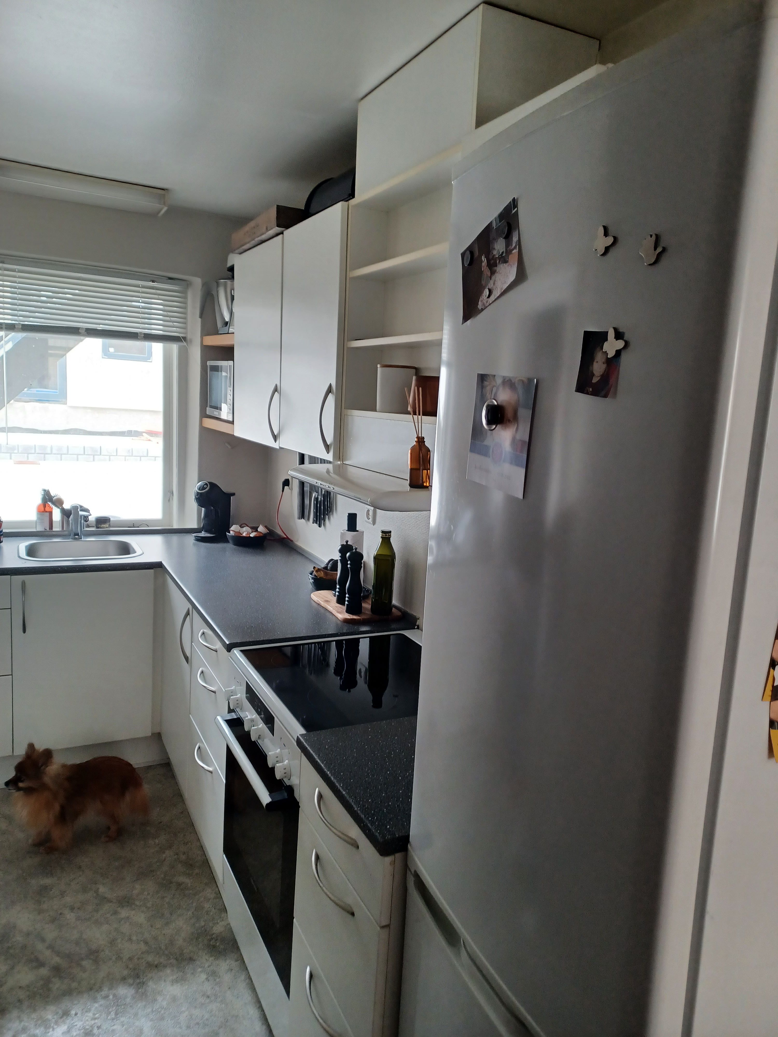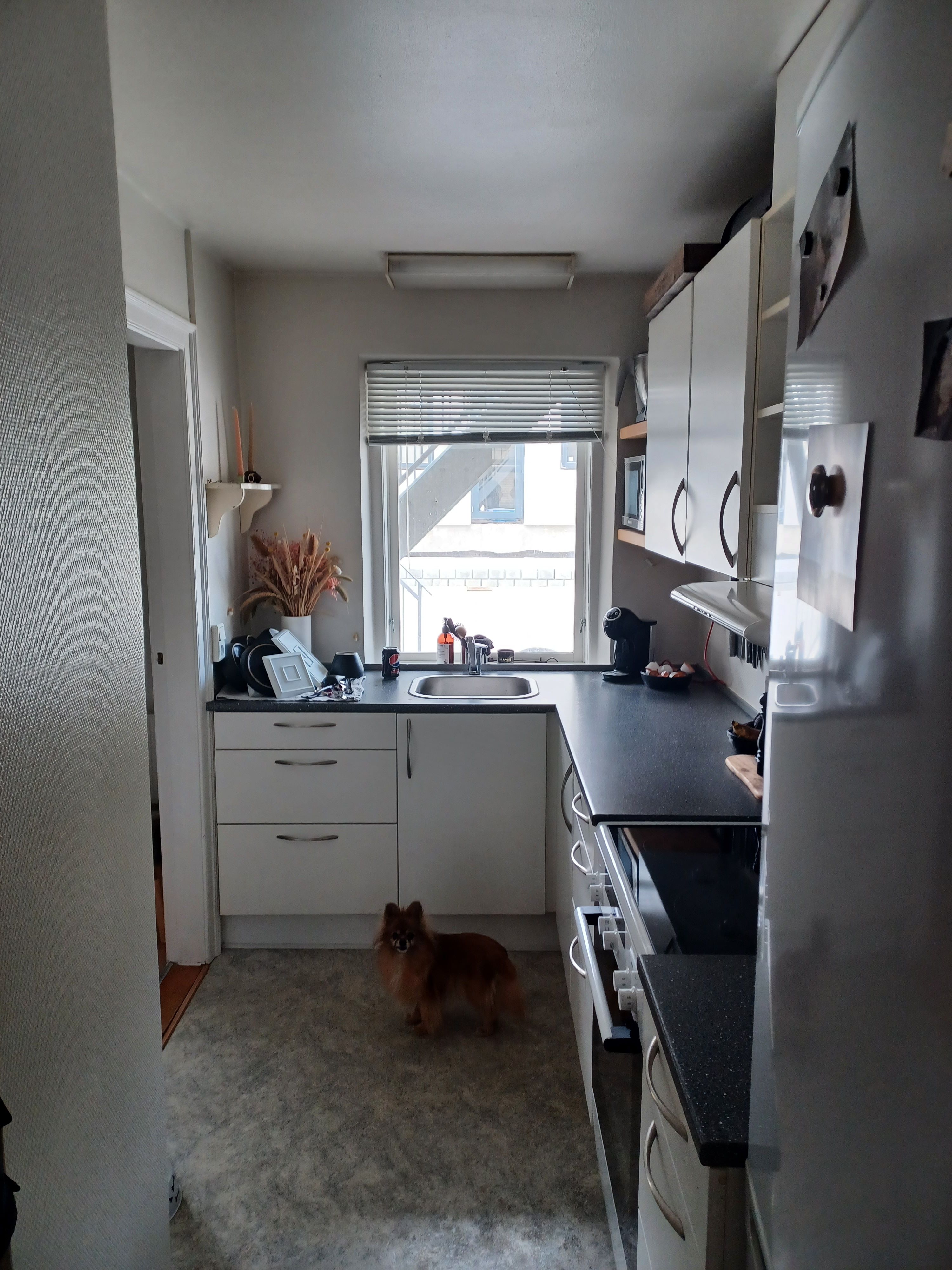 Boligen byder på en rummelig stue med flot lysindfald og god plads til både sofaafdeling og spiseplads. Køkkenet fremstår pænt og funktionelt med hvide elementer, god bordplads samt opvaskemaskine. Derudover får du et godt værelse, som nemt kan indrettes som soveværelse med plads til garderobe.