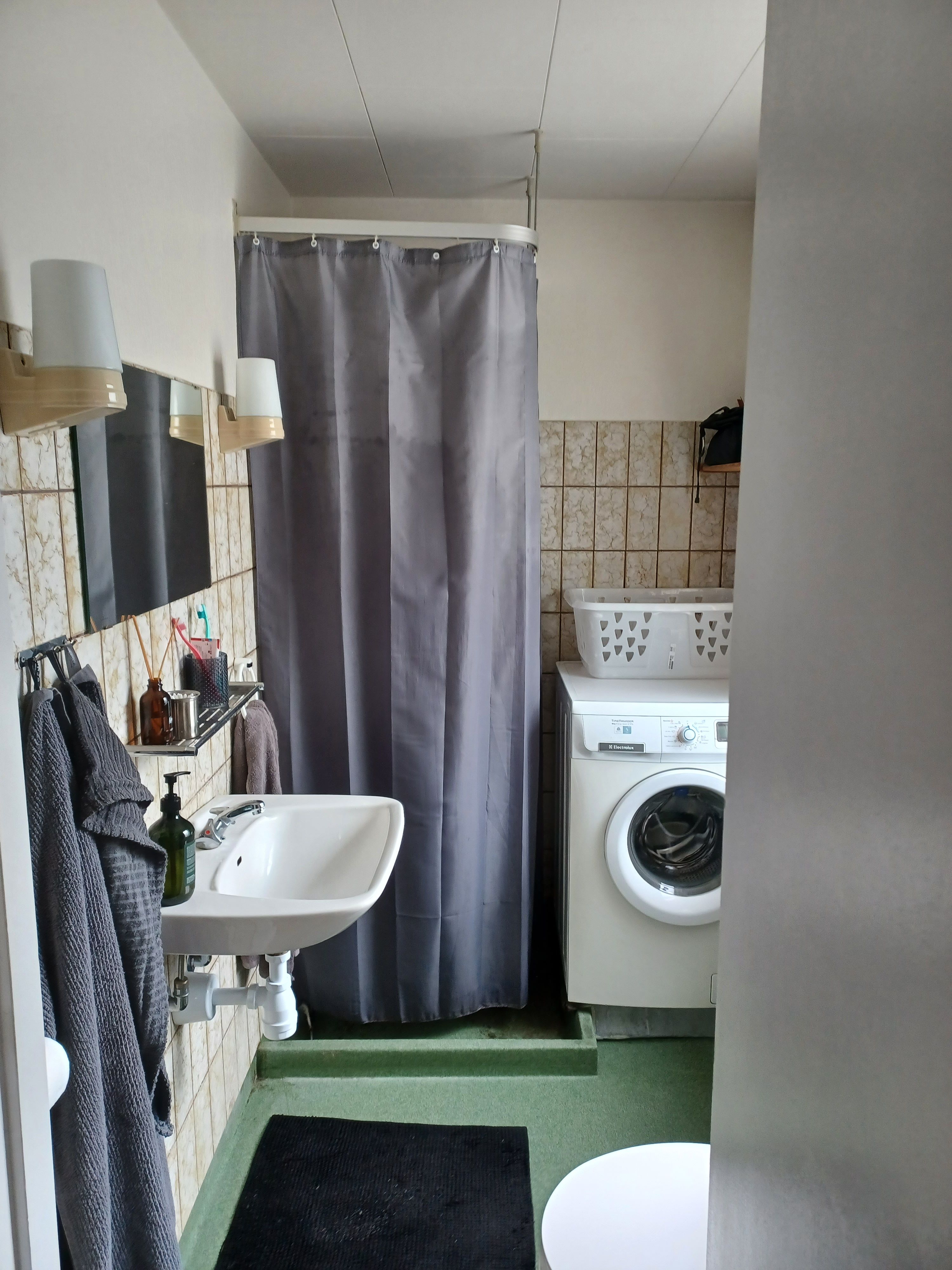 Badeværelset er lyst og praktisk indrettet, og der er adgang til fælles vaskekælder samt depotrum i kælderen.