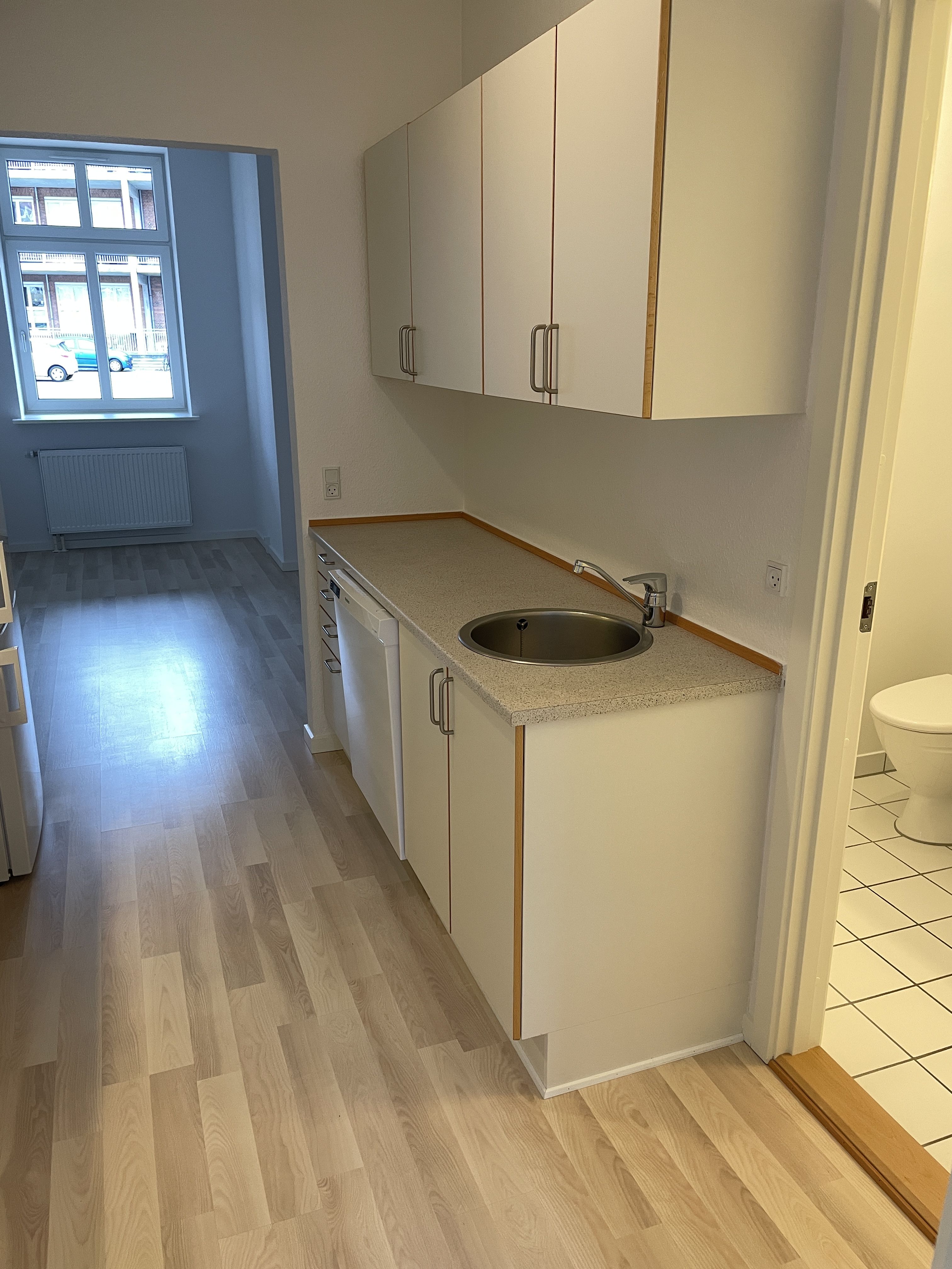 Trappevask, vask/tørretumbler og kold vand er inkluderet i huslejen.