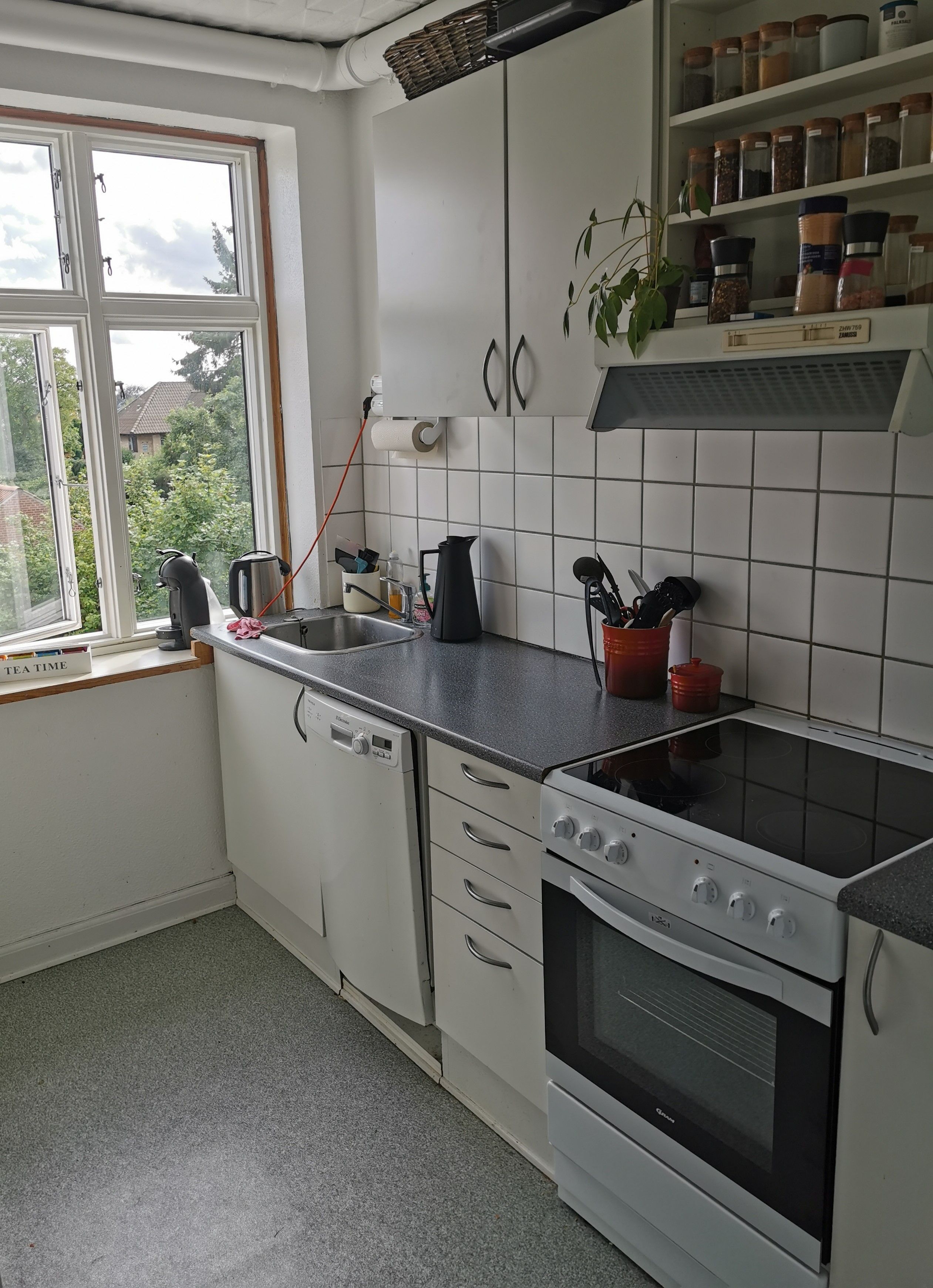 Lejligheden ligger i stueplan, men højt så folk fra gaden ikke kan se ind.