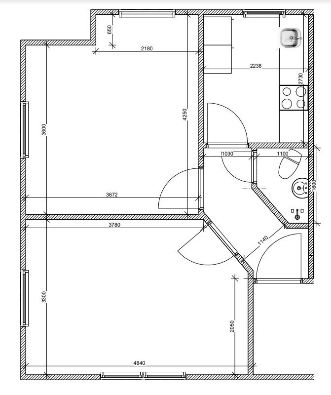 Du træder ind i en lille entré, hvorfra der er adgang til bad/toilet. Viderefrem træder du ind i køkkenet som er ældre med funktionel.