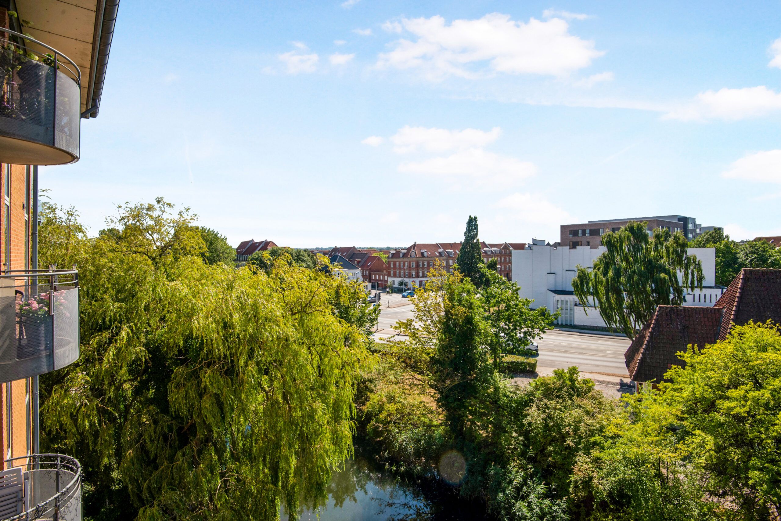 Stuen er rummelig og let at indrette med både sofa- og spiseområde, og de store vinduer bidrager med et flot lys gennem dagen. Soveværelset er lyst og roligt med faste skabe til opbevaring samt adgang til en fransk altan, der giver mulighed for at åbne op og trække frisk luft og grønt udsyn ind i rummet.