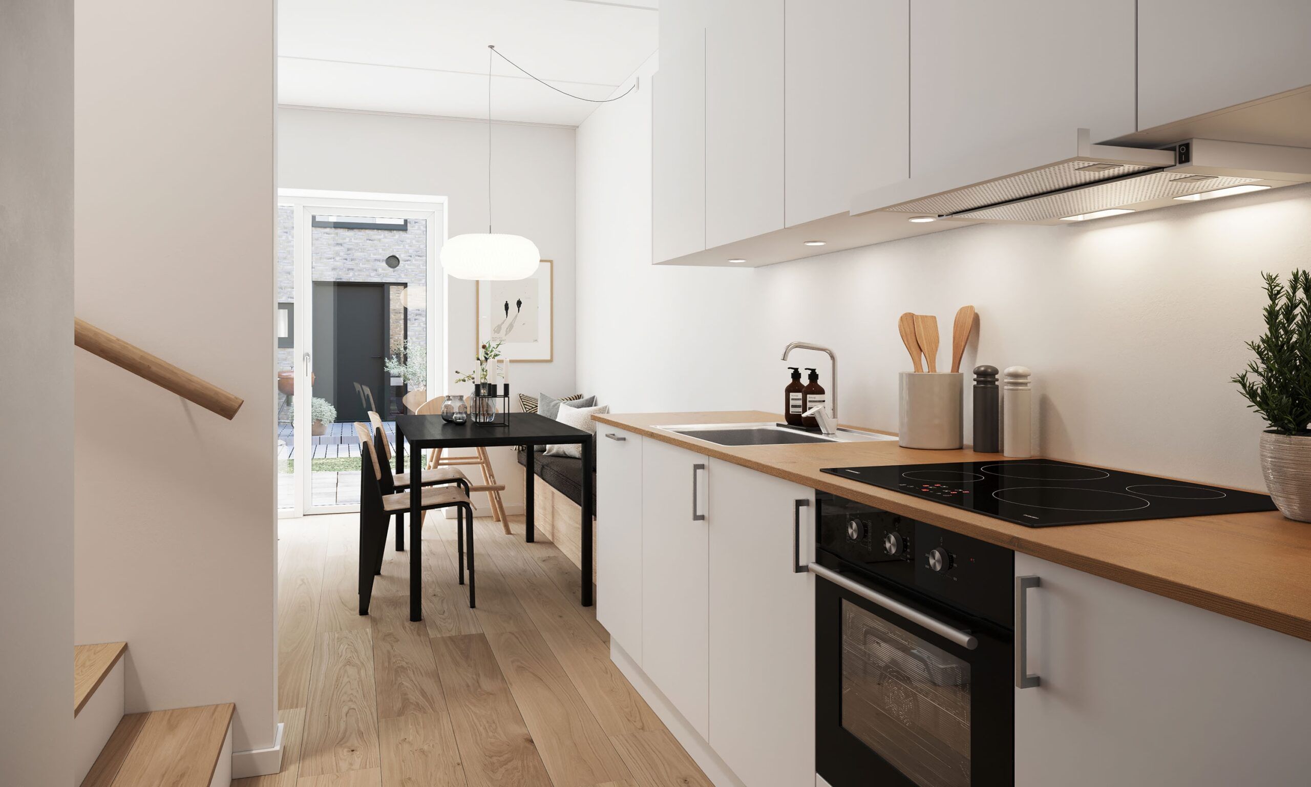 Velindrettet treværelses lejlighed med køkken-alrum, to værelser, badeværelse, entré samt egen altan/terrasse. Til boligen hører eget skur