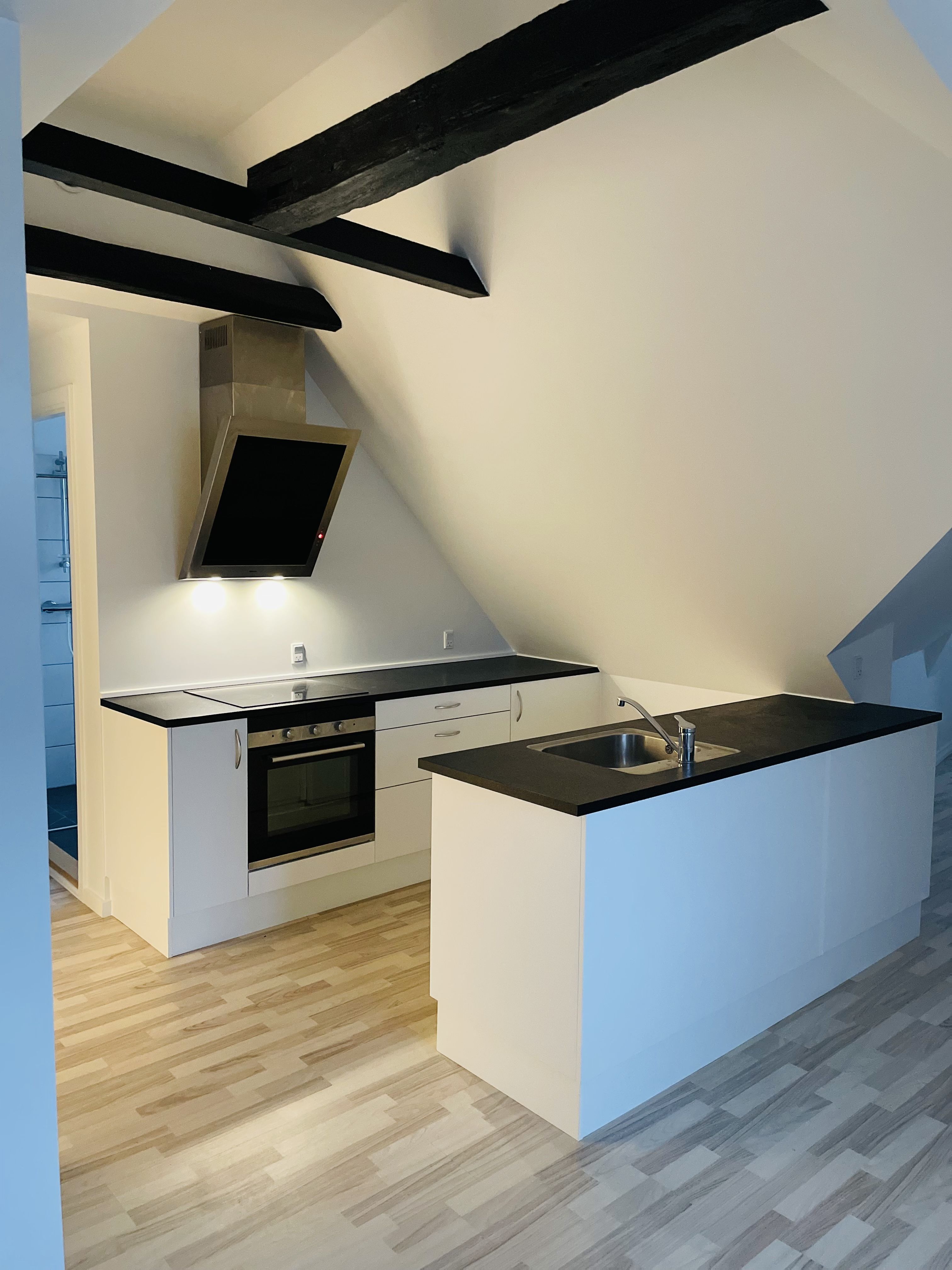 Køkkenet ligger i åben forbindelse til stuen, hvor der er adgang til altan