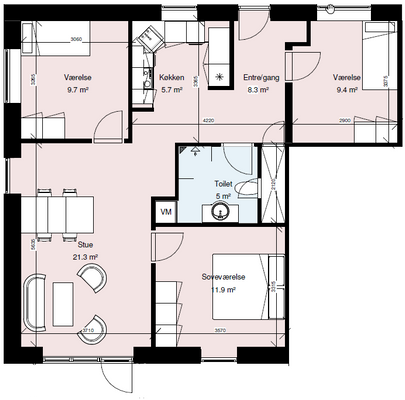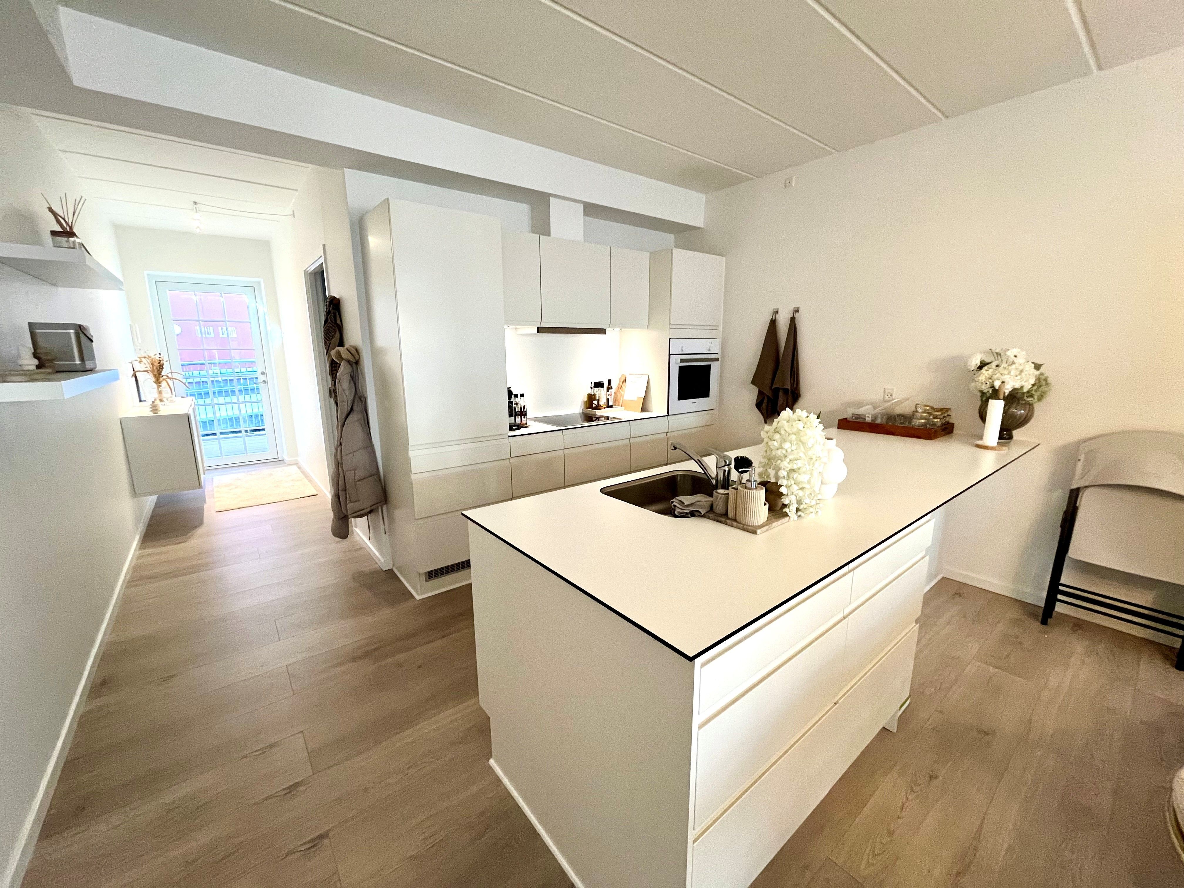 Denne rummelige 3-værelses lejlighed på 94 m² byder på et moderne og stilrent hjem med lyse trægulve og store vinduespartier, der skaber et naturligt lysindfald i hele boligen. Hele lejligheden er desuden udstyret med gulvvarme.