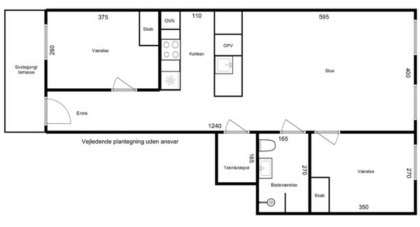 Køkkenet er indrettet med hvide elementer og med alt i hårde hvidevarer. Det er tilmed åbent integreret med den rummelige stue, hvor der er plads til både sofaarrangement og spiseområde. Fra stuen er der direkte adgang til en privat terrasse, der giver mulighed for udeliv i naturskønne omgivelser.