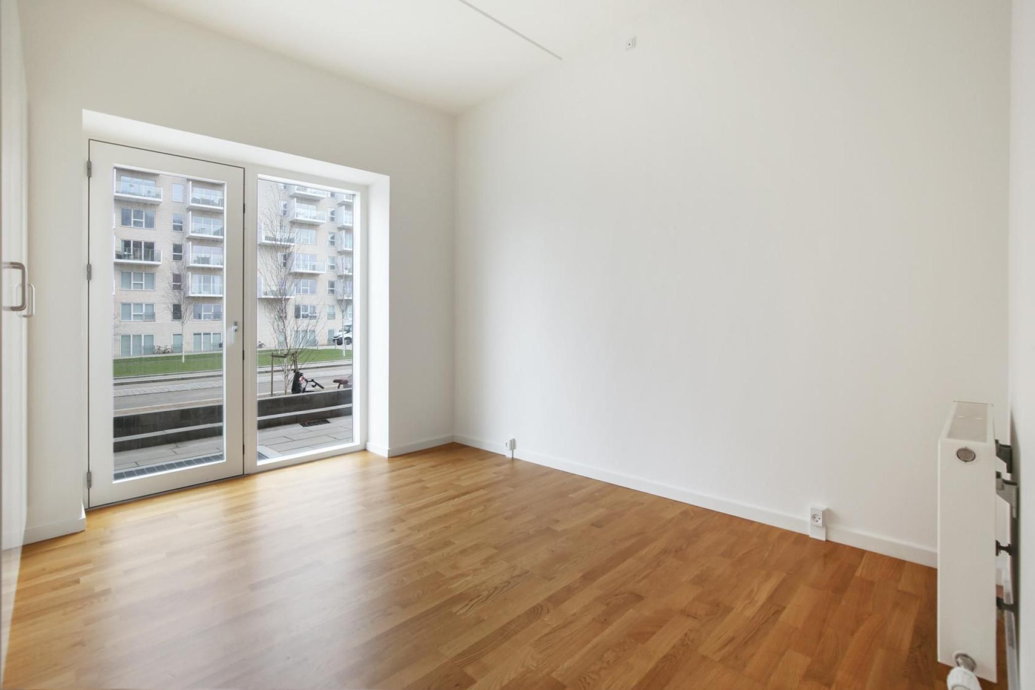 Lejligheden på 4. sal byder på en rummelig entré med god plads til sko og overtøj. Det åbne køkken-alrum har spiseplads og direkte adgang til altanen, mens den store opholdsstue ligeledes har udgang til to altaner og et imponerende lysindfald. Herfra kan du nyde den uhindrede udsigt (billede på annoncen er taget fra 7. sal) over Byparken og byens liv. Boligen rummer to rummelige soveværelser samt et stilfuldt og lyst badeværelse med vaskesøjle, separat bruseniche og mange gennemførte detaljer. Der er gulvvarme i hele lejligheden, hvilket giver en behagelig komfort året rundt. Ejendommen har en pæn og præsentabel opgang med elevator og ligger i Ørestad City – en moderne og levende bydel med alt, hvad du behøver. Her er shopping i Field’s, grønne områder, golfbane samt daginstitutioner, skole og gymnasium inden for kort afstand. Lejligheden ligger kun 5 minutters gang fra metroen, hvorfra du kan være i Københavns centrum på cirka 10 minutter. --- The apartment welcomes you with a spacious entrance hall with ample room for shoes and coats. The open-plan kitchen and dining area features space for dining and direct access to the balcony, while the large living room also opens onto two balconies and benefits from an impressive amount of natural light. From here you can enjoy uninterrupted views over Byparken and the surrounding city life (photo is from another apartment on the 7. floor - but still amazing). The home offers two generously sized bedrooms as well as a stylish and bright bathroom with washer and dryer, a separate shower area and many well-designed details. Underfloor heating runs throughout the entire apartment, providing a comfortable indoor climate all year round. The building has a neat and well-presented entrance with lift access and is located in Ørestad City – a modern and vibrant neighbourhood with everything you need nearby. Here you will find shopping at Field’s, green areas, a golf course, as well as daycare centres, a school and a high school all within easy walking distance. The apartment is only a 5-minute walk from the Metro, from where you can reach Copenhagen city centre in approximately 10 minutes.