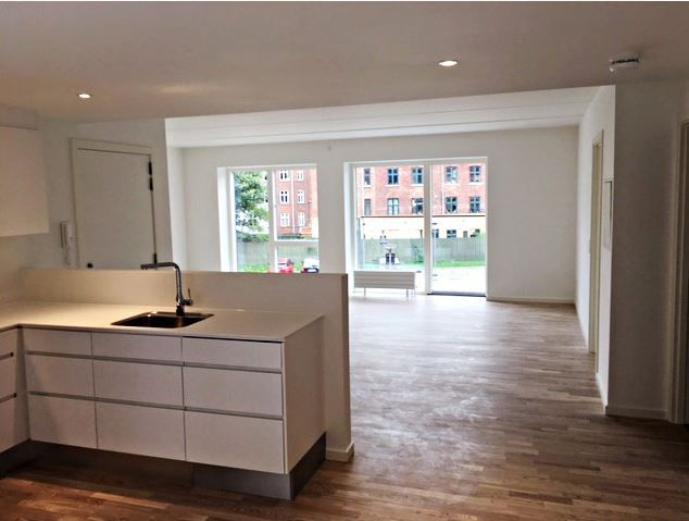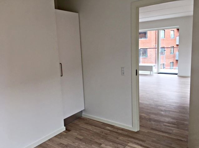 Lejligheden er opført i lyse materialer, med store vinduer og fokus på maksimal udnyttelse af lyset og udsigten til vandet. Det lyse køkken er fra Invita og indeholder masser af skabsplads samt hårde hvidevarer fra Siemens. Opholdsstue og køkken er i åben forbindelse, så her er god mulighed for både spiseafdeling og hyggeligt sofahjørne. Badeværelset er opført med store fliser på gulv samt i bruseniche og derudover malet hvidt. Der er separat vaskesøjle med både vaskemaskine og tørretumbler. Og så er der desuden gulvvarme. I soveværelset samt i entré/fordelingsgang findes hvide indbygningsskabe. Gulvene er et egetræsparket fra Junckers. Det er muligt at ansøge om husdyrtilladelse i alle vores lejemål. OBS: ønskes der mål af lejligheden skal du selv huske opmålings udstyr til fremvisning, da der ikke er mål på plantegningen.