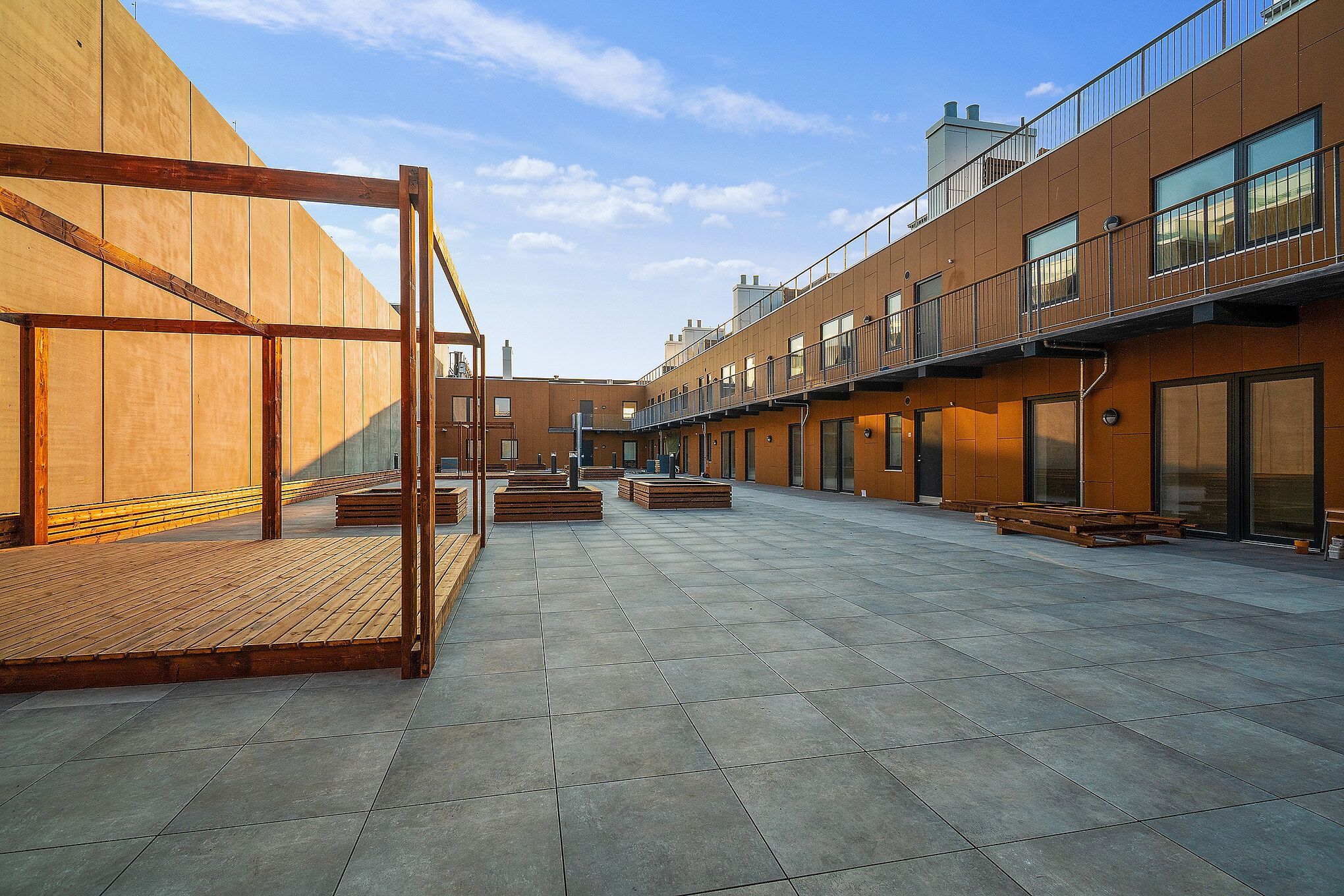 Ejendommen huser i alt 20 lejeboliger på 1-5 værelser fordelt på 96-149 m², heraf fire unikke penthouselejligheder beliggende på 5. sal med udsigt over byens tage. Det er ejendommens gamle tørreloft, der, med omtanke for den originale arkitektur, i 2020 blev transformeret til fire moderne kvalitetsboliger. Ejendommen rummer desuden fællesvaskeri, hyggeligt gårdareal og cykelparkering, samt dagligvarebutik og café i stueetagen.