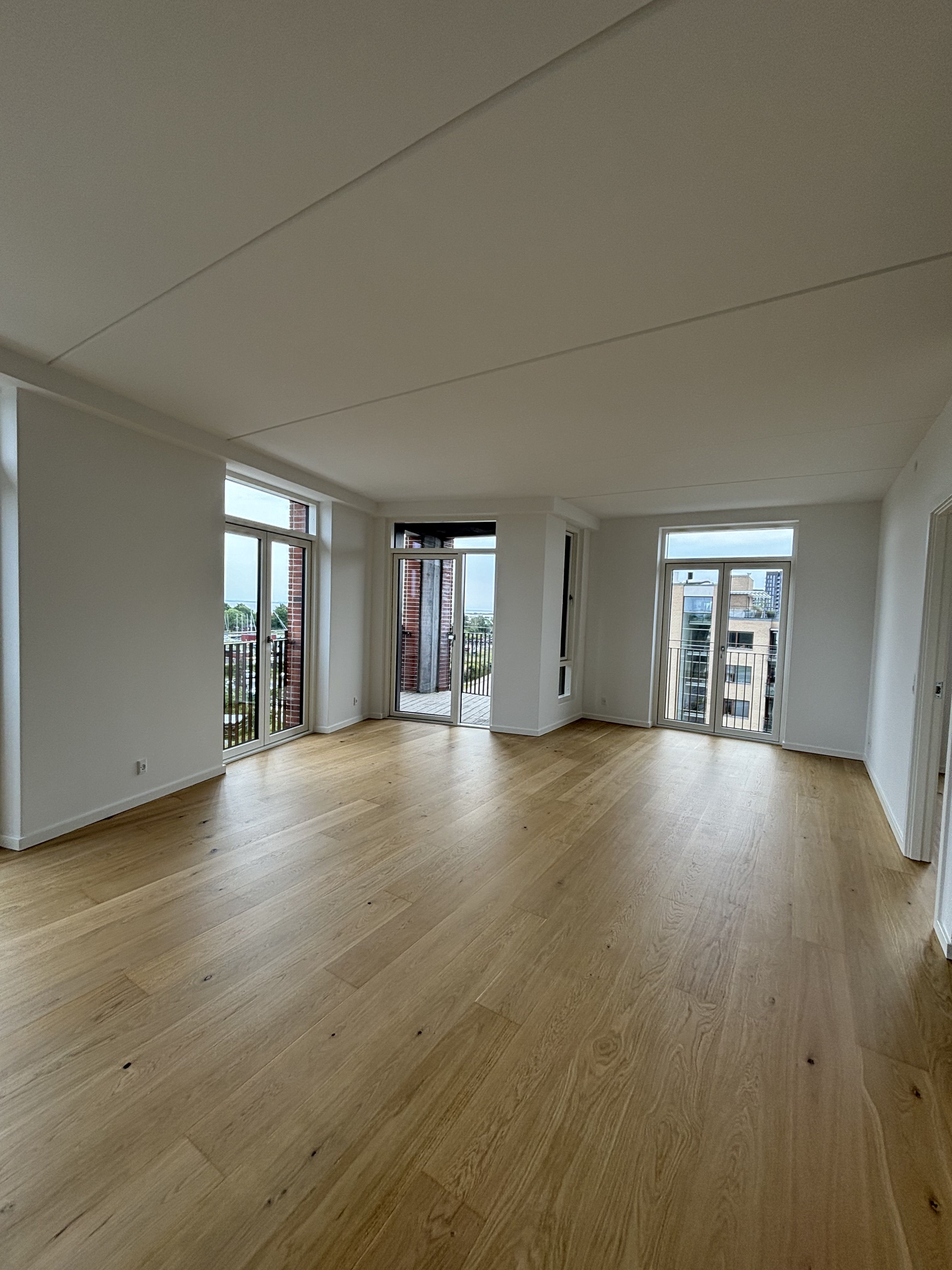 Lejligheden er beliggende i en flot og moderne ejendom langs vandkanten i Nordhavn. Lejligheden er placeret øverst i ejendommen, er i to plan og har adgang til attraktive udeområder med en fantastisk udsigt over nærområdet. Lejligheden er velegnet til enlige lejere, et par eller en mindre familie. Man ankommer i lejlighedens entre, der fremstår i god og rummelig størrelse. Her er plads til møblement og rundt hjørnet er der adgang til en mindre depotrum med plads til overtøj. Lejlighedens stuerum er i en god og rummelig størrelse med køkkenet placeret i midten af rummet. I stuerummet er store vinduespartier mod syd og giver en flot udsigt over vandet. Der er en naturlig opdeling af spise- og opholdsstue og mulighed for at etablere siddepladser rundt køkkenøen. Køkkenet er af højeste kvalitet og er udstyret med alle nødvendige hårde hvidevarer.Der forefindes et separat soveværelse i lejlighedens nederste plan. Her er plads til at indrette med dobbeltseng og skabe, hvis ønsket - men kan også indrettes som børne eller gæsteværelse, hvis ønsket. Lejlighedens badeværelse er placeret i nederste plan og er i en fin størrelse med separat bruseniche. Der er yderligere indrettet et separat bryggers i lejligheden med indbyggede skabe og vaskefaciliteter. Ad intern trappe kommer man til lejlighedens øvre plan og taghus. Her er lejlighedens primære soveværelse indrettet i dag, men der er flere muligheder for udnyttelse af det øverste plan. Fra taghuset er direkte udgang til lejlighedens imponerende tagterrasse på hele 69 m2. Tagterrassen er delvist overdækket og kan indrettes med flere afdelinger rundt langs taghuset. Der er to udgange til tagterrassen og en absolut skøn og flot udsigt over nærområdet. Der er kun få minutters gågang til nærmeste metrostation og havnebus fra ejendommen - ligesom der er caféer, restauranter og indkøbsmuligheder lige i nærområdet. Der er gode parkeringsforhold i de omkringliggende parkeringshuse og parkeringskældre. Udlejes ikke som delebolig. Forbrugsudgifter er ikke inklusiv i huslejen.