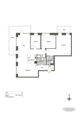 Lejligheden er indrettet med entré der åbner sig op til stort køkken-alrum, med lækkert Invita køkken. Herfra udgang til egen altan mod gården, hvor der er ro og dejlig eftermiddagssol.