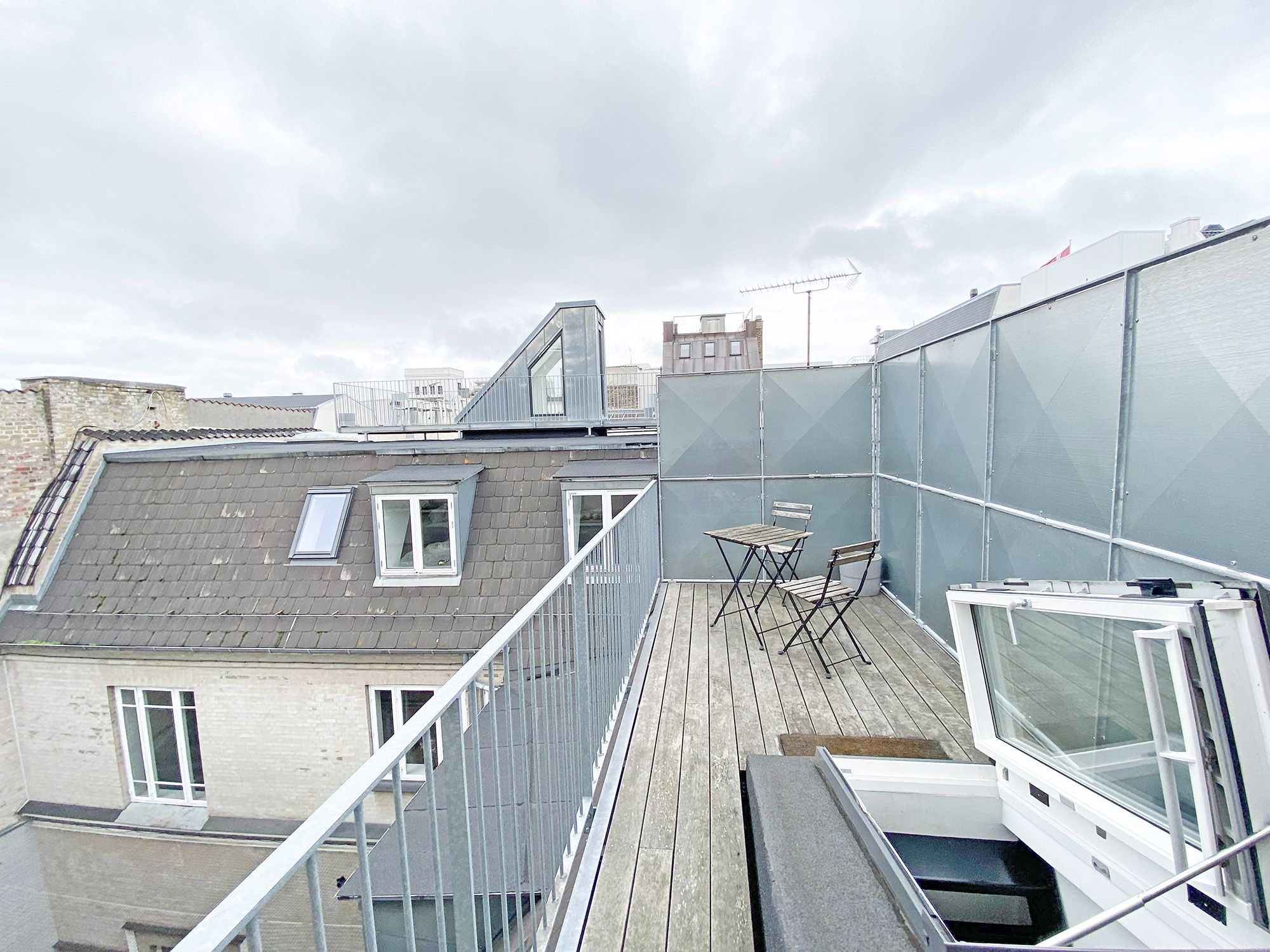 De høje lofter og de store vinduespartier skaber en fantastisk rumfornemmelse og giver boligen et eksklusivt, luftigt udtryk. Som kronen på værket får du adgang til en privat tagterrasse, hvor du kan nyde solen, udsigten og roen – helt uforstyrret. Perfekt til afslapning, hyggelige sommeraftener og eksklusive sammenkomster under åben himmel.