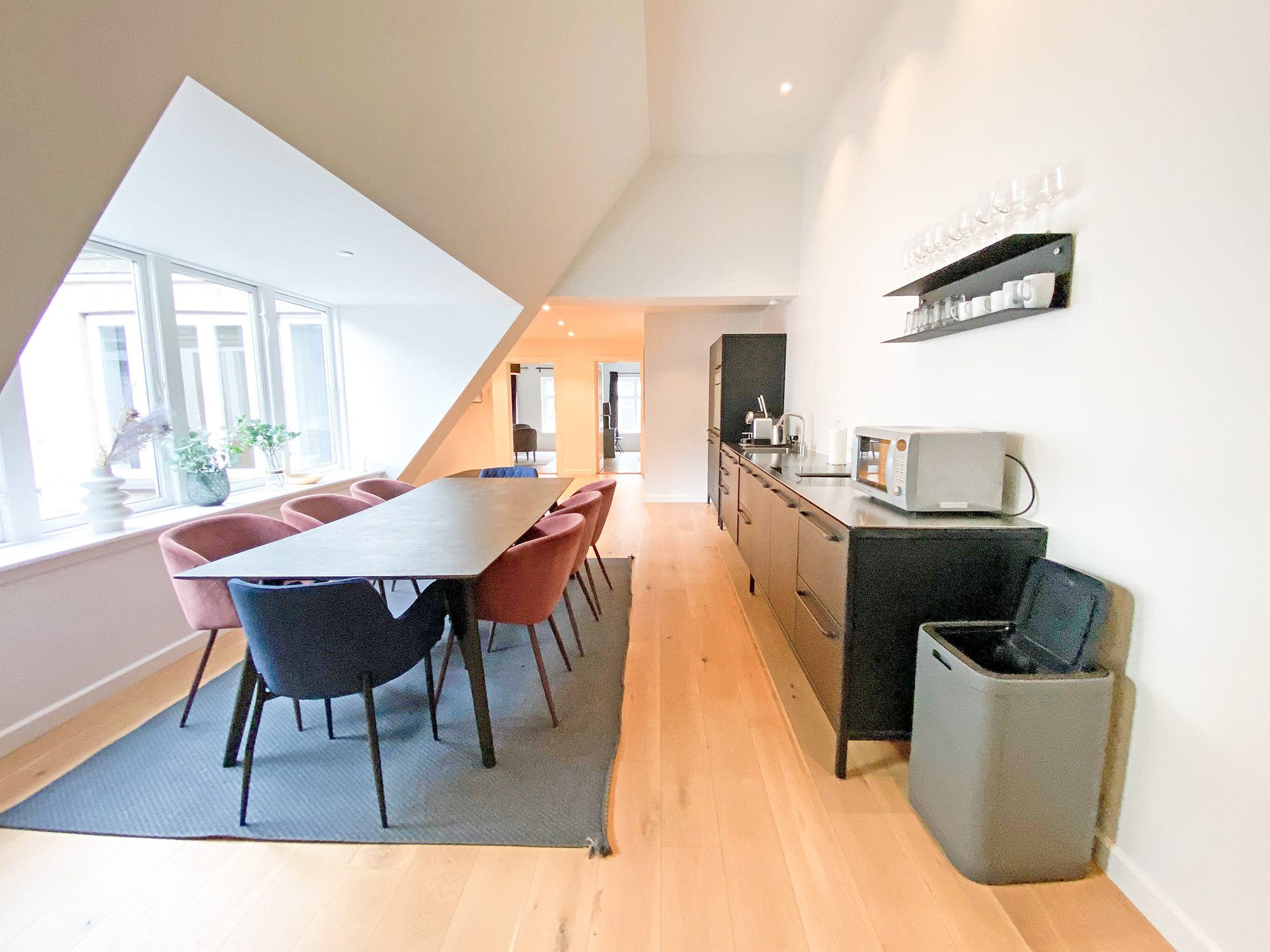 Lejligheden byder på tre indbydende soveværelser med god skabsplads og masser af naturligt lys. Det imponerende køkken-alrum er boligens naturlige samlingspunkt – et kæmpe, åbent rum med højt til loftet, hvor æstetik og funktionalitet går hånd i hånd. Her er der plads til både hverdagsliv og store middage med familie og gæster.