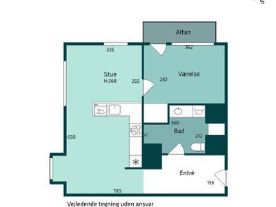 2 vær. lejlighed på 70 m²