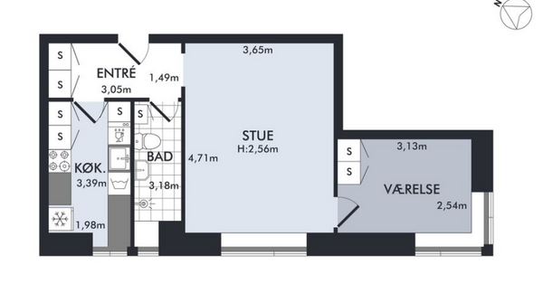 1,5 vær. lejlighed på 46 m²
