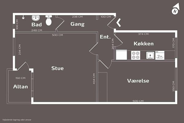 2 vær. lejlighed på 60 m²