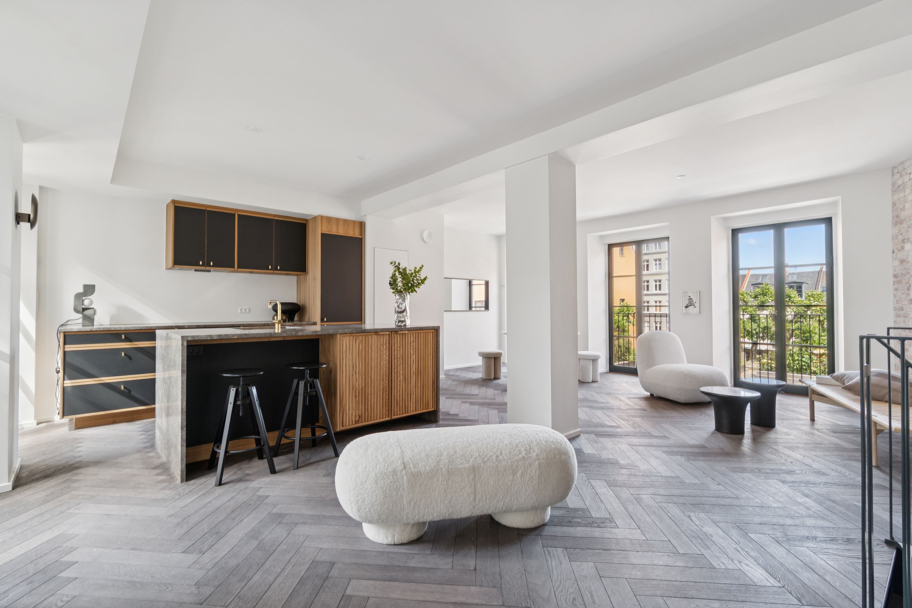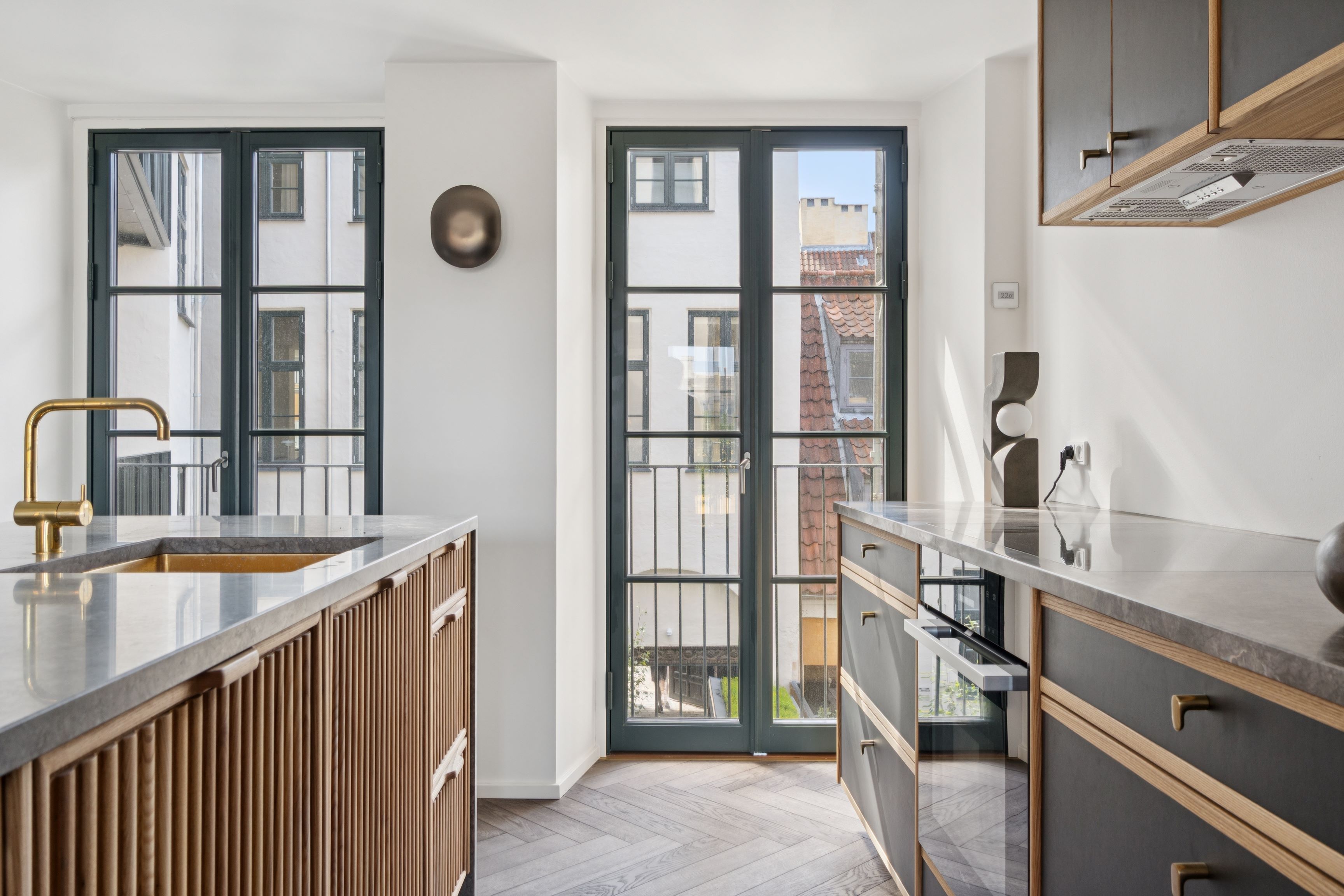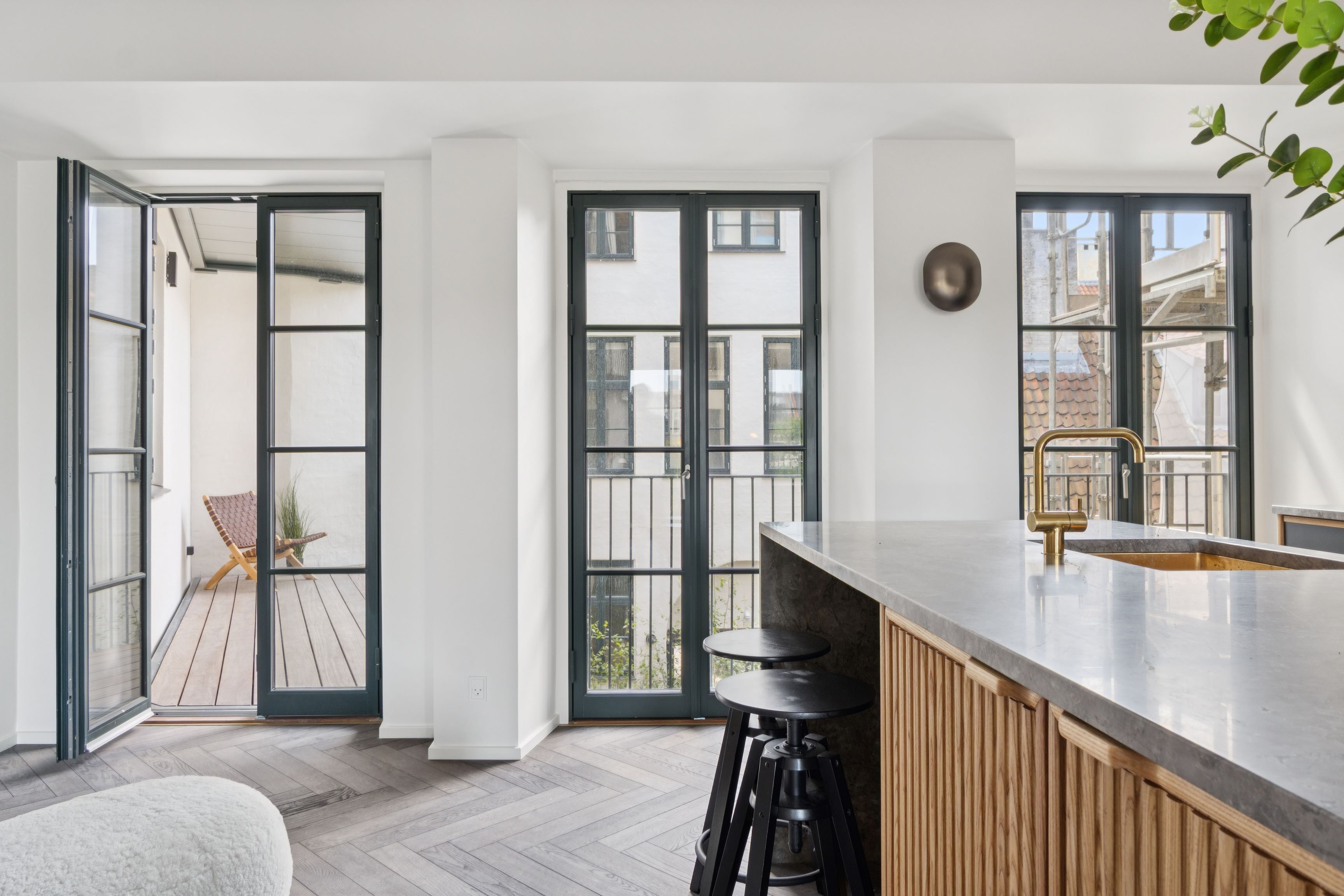 Ikke nok med at Nordhavn er en unik bydel, så er denne lejlighed beliggende i The Silo også noget helt unikt for sig selv. Lejligheden er hele 213 kvadratmetre og rummer 3 separate værelser, toilet samt badeværelse. Væggene er beholdt i rå beton som sammen med det nye stilrene køkken supplerer ejendommen i en klasse for sig selv. Det første du bliver mødt af når du træder ind af døren på Fortkaj er den enestående opgang, som allerede fra første øjekast giver følelsen af hjertevarme og ikke mindst at der er tale om noget helt unikt og anderledes. Lejligheden er beliggende i en veldrevet ejendom med ejerlejligheder, som du tydeligvis kan mærke da dette ikke er en traditionel udlejningsejendom - nej, det er noget for sig selv og her er der styr på tingene med reception og lobby-lignende indgang. Du kan tage elevatoren direkte ind i din lejlighed. Har kommer du direkte ind i det kæmpestore køkkenalrum, stue og spisestue ud i ét. Køkkenet er hvid og lyst med alt i hårde hvidevarer. Derudover har du et badeværelse, hvor ejer har bevaret den gamle elevatordør som indgang til badeværelset - super fin detalje! Ydermere 2 værelser med trægulv og skabsvæg. Fra masterbedroom er der adgang til stort badeværelse med vaskesøjle. Derudover har du 1 yderligere værelse med newyorker væg i glas. Der er fra flere af værelserne fransk altan, og i alle rum er der store gulv-til-loft vinduer med et fantastisk lysindfald. Der er gulvvarme overalt og ligeledes indbyggede gardiner. Der medfølger opbevaringsrum på samme etage. Der er fitness I ejendommen, som du har fri adgang til at benytte som beboer i ejendommen. Ejendommen er beliggende i Århusgadekvarteret som efterhånden er ved at være fuldt udviklet. Her finder du unikke cafeér, butikker og flere supermarkeder - ja faktisk har du alt hvad du har brug for indenfor rækkevidde. Ejendommen er oprindelig en gammel kornsilo fra 1961, som i mange år stod splitternøgen med graffitien "Hvad drikker Møller" på facaden. I 2017 blev ejendommen renoveret og rummer nu 39 pivlækre lejligheder med detaljer aldrig set før i Danmark. Året efter blev den ikke bare tildelt Renoveringsprisen for bedste renoveringsprojekt, den fik også Architizer Honoree Award, Global Galvatizing Award og Civic Trust Award. Der medfølger en privat parkeringsplads under ejendommen.  Lejligheden er klar til indflytning 01.07.2026.