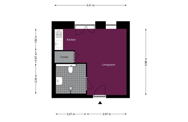 1 værelses lejlighed på 34 m²