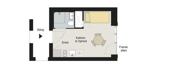 1 værelses lejlighed på 35 m²