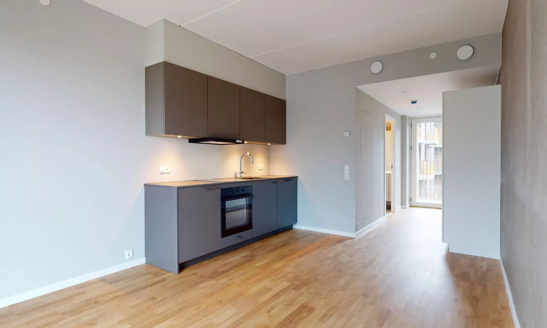Alle lejligheder er beliggende på bygningens første sal ovenpå en stor og velassorteret Meny. Alle lejligheder er 1-værelseslejligheder med kombineret stue- og køkkenområde og eget badeværelse. Der er depotrum i bygningens kælder. Hårde hvidevarer Der er køleskab og fryser samt kogeplade i boligen. Vaskemaskine og tørretumbler findes i det fælles vaskerum. Husdyr Lejere kan ansøge om tilladelse til at holde én indekat på adressen. Udekatte og hund er ikke tilladt. Se vores samlede husdyrsregler her. Parkering Der er ikke parkering tilknyttet lejlighederne. Elevator: Der er elevator i ejendommen. Fælles arealer Lejlighederne omkranser alle en central atriumgård med beplantning og havemøbler, hvor der er plads til hygge med vennerne eller til at fordybe sig i en god bog. Det er også muligt at leje et stort fællesrum med køkken til private fester. De viste billeder kan være fra et andet men tilsvarende lejemål i samme ejendom. Mindre afvigelser kan derfor forekomme.