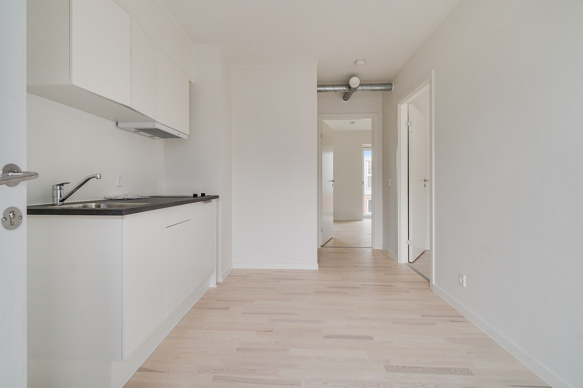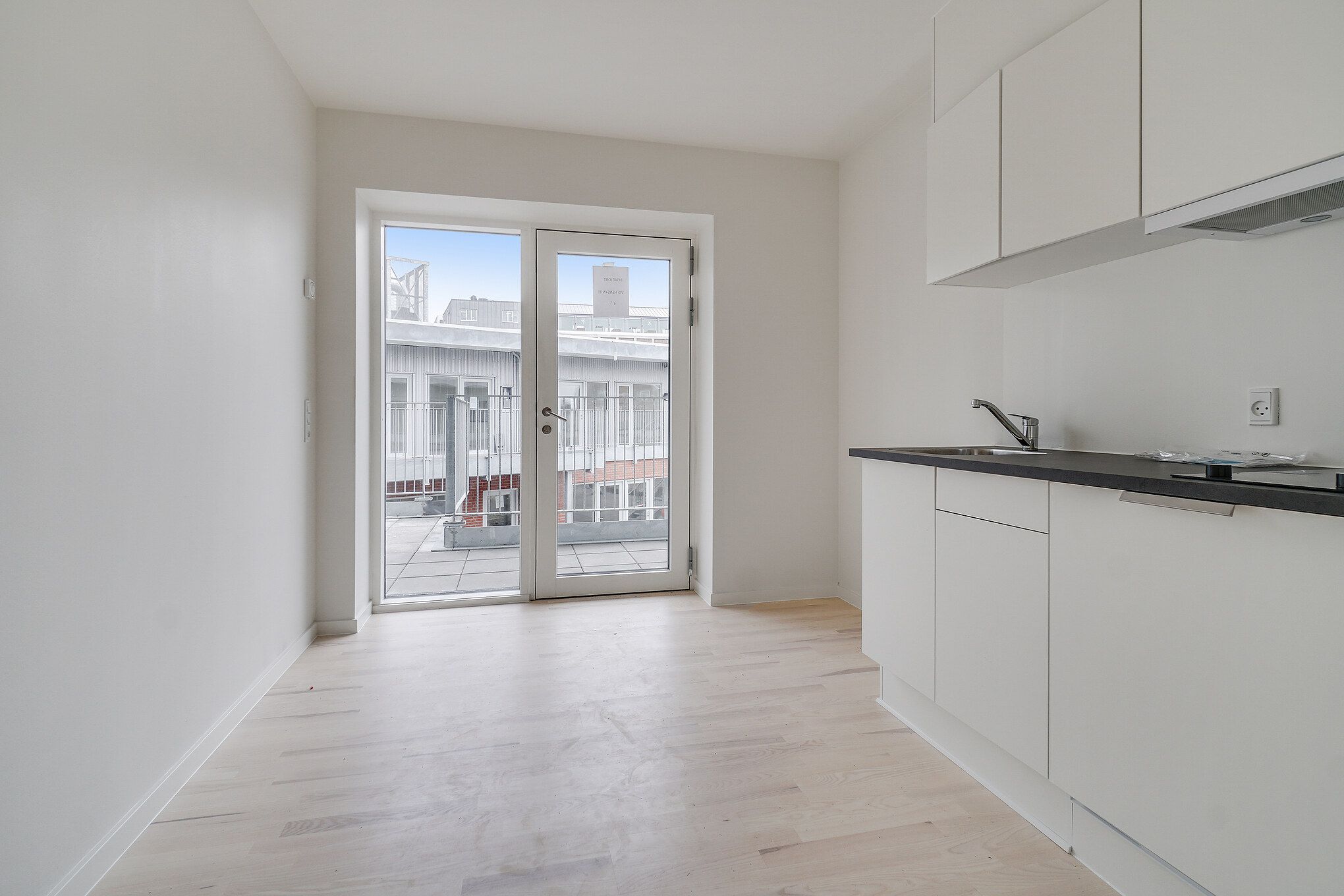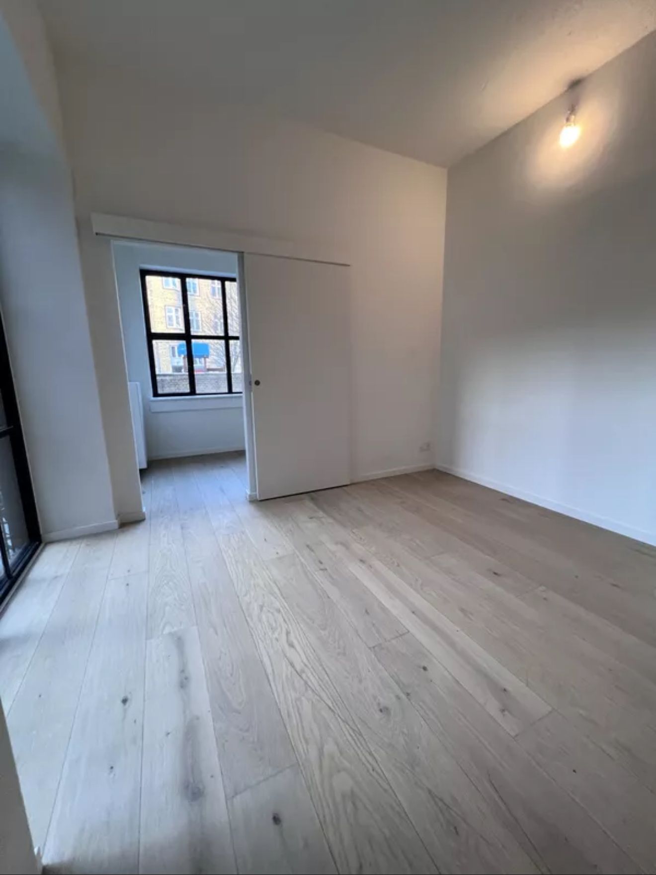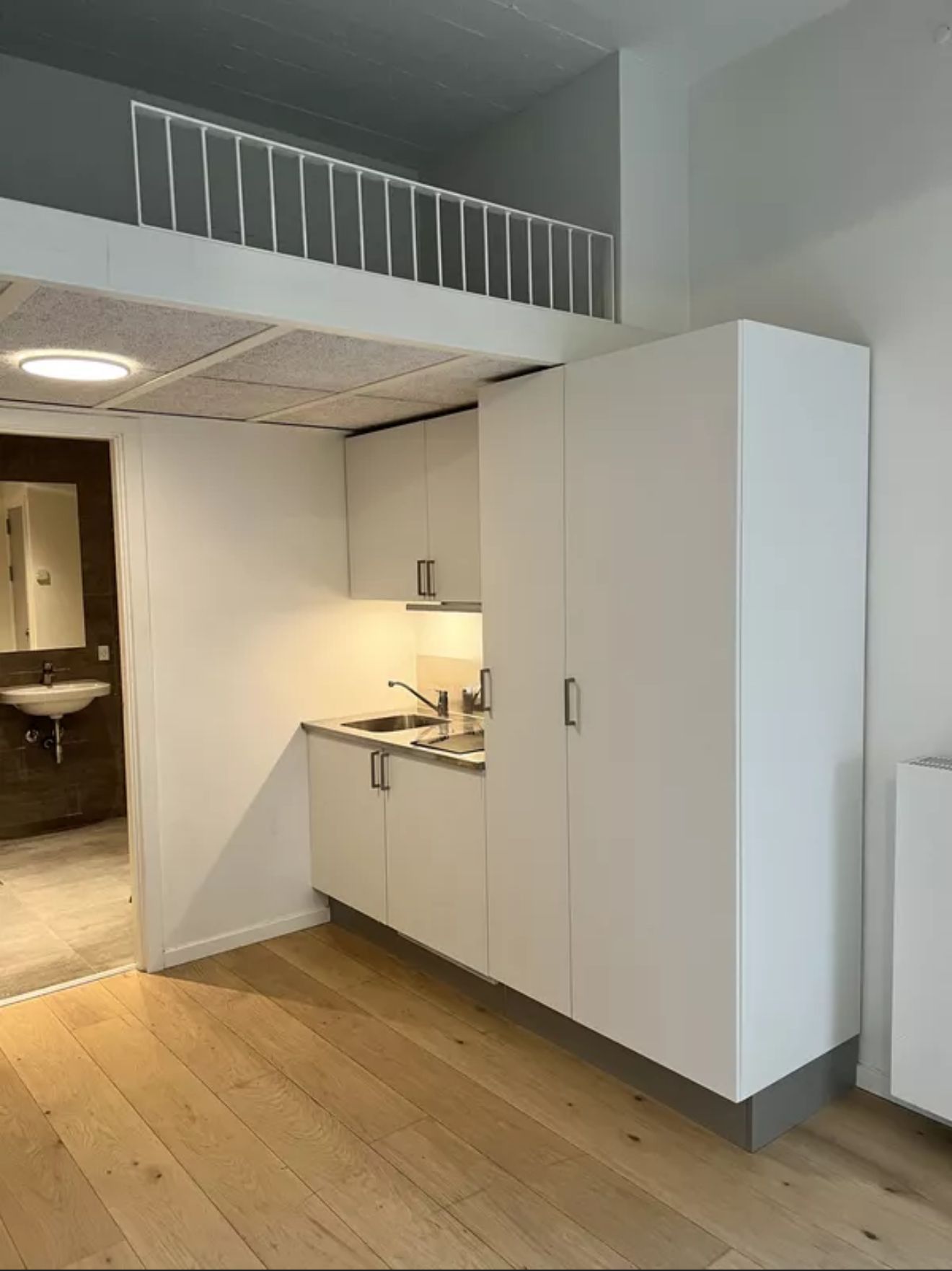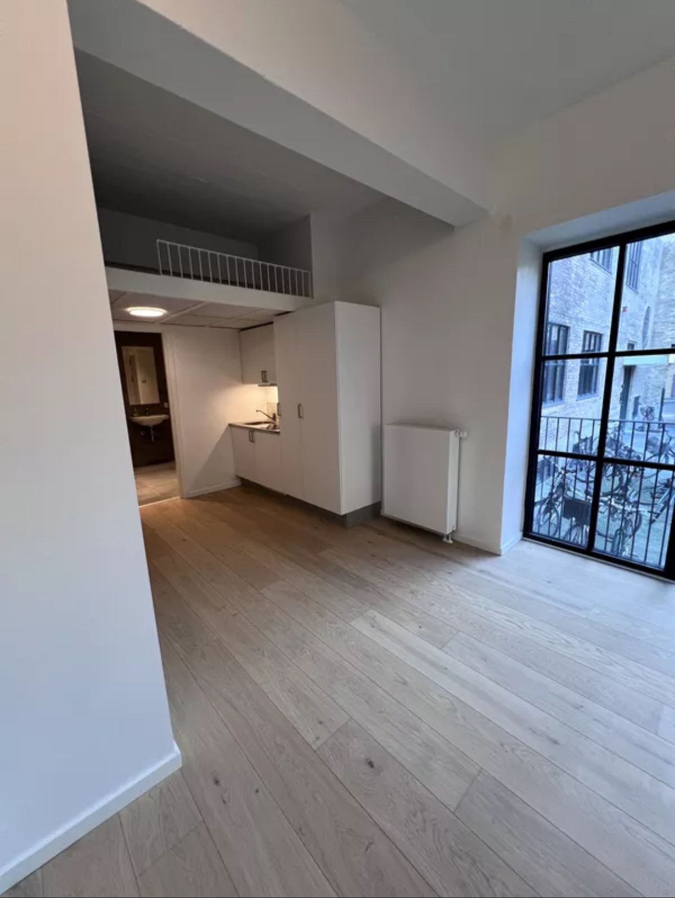 This furnished 1,5 bedroom apartment at Canvas Living in Frederiksberg comes with design furniture, a stylish kitchen and a smart layout with a sliding door to the bedroom. The kitchen is fully equipped with oven, stovetop, fridge freezer, dishwasher and basic kitchen utensils. The building introduces a new concept in Copenhagen created for young professionals who want a modern home in a central location with access to shared spaces for work and social life.