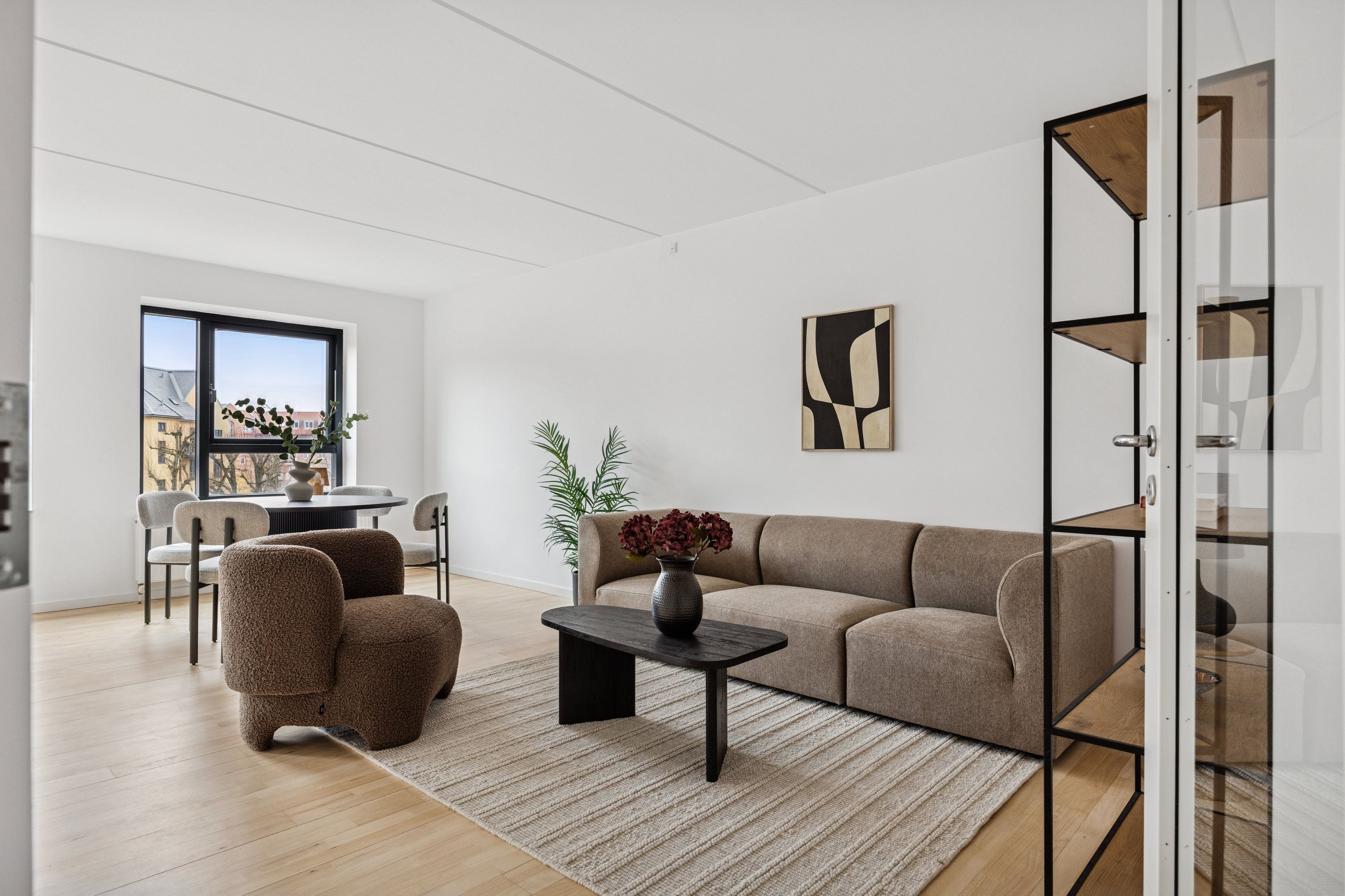 Alle boligerne er indrettet i kvalitetsmaterialer og ensartede udtryk. Her er hvide JKE-elementer i køkkener og på badeværelser med integrerede greb. Til badeværelser er valgt store stilrene fliser i stone brown, og her er muret hylde med integreret lys i brusenicher. Der er gulvvarme i alle boliger og plankegulve. Boligerne er udstyret med fuld hvidevarepakke inklusive vaskesøjle. Lejlighederne har tilhørende depotrum i kælderen eller som depotrum på tagterrassen.