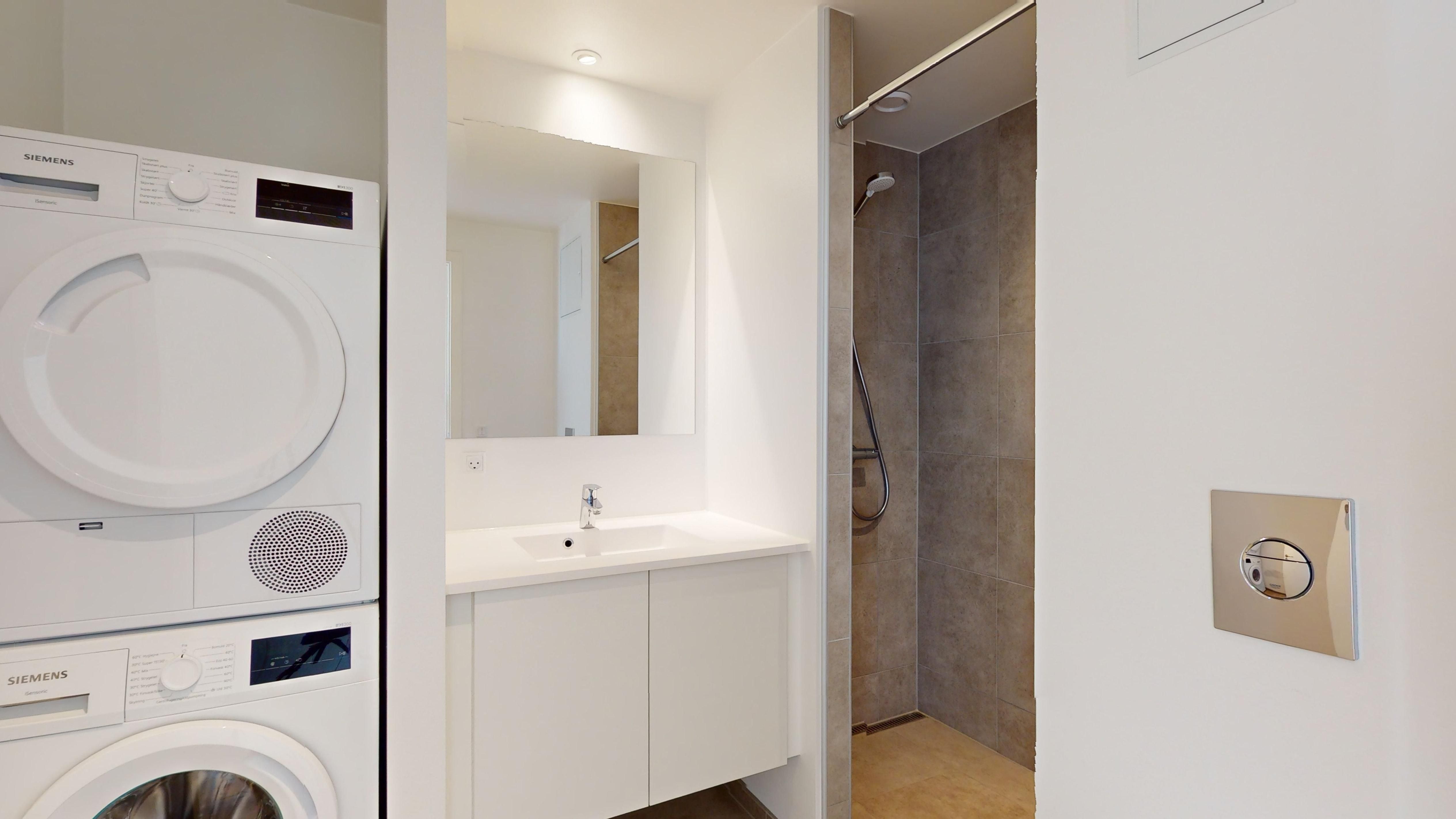 **Stor og åben gårdhave** Marthahus er bygget op omkring en gårdhave i en klassisk københavnerinspireret blokstruktur. Bygningen er trukket lidt tilbage fra gaden og har facader af håndlavede mursten i varme røde toner, der gradvist bliver lysere mod himlen og leder dagslyset ned i gården. Selve gårdhaven har hyggelige siddepladser, små legeområder og en offentlig sti fra øst til vest, der er markeret med en særlig belægning. Træer og stauder i forskellige højder og farver bidrager til charmen. **Tæt på metro, shopping og kultur** Kun få minutters gang fra din dør finder du metro, butikker, caféer, restauranter, Byparken og Ørestads Streethal med indendørs sport, klatring, legeområder og en udendørs fitnesspark. Bellakvarter er hjemsted for Bella Center Copenhagen, som er vært for populære messer, herunder designevents og den årlige LEGO World. I nærheden ligger det ikoniske AC Hotel Bella Sky, som har en tagrestaurant med en fantastisk udsigt over byen. **Yderligere info** \- Kæledyr: Tilladt efter ansøgning (hunde max 15 kg, ved større hunde skal søges yderligere dispensation) \- Lejekontrakt: Minimum 12 måneder. Derefter 3 måneders opsigelse. OBS: Billederne er fra en 2-værelses bolig, og derved IKKE fra den specifikke. Materialer er ens i alle boliger.