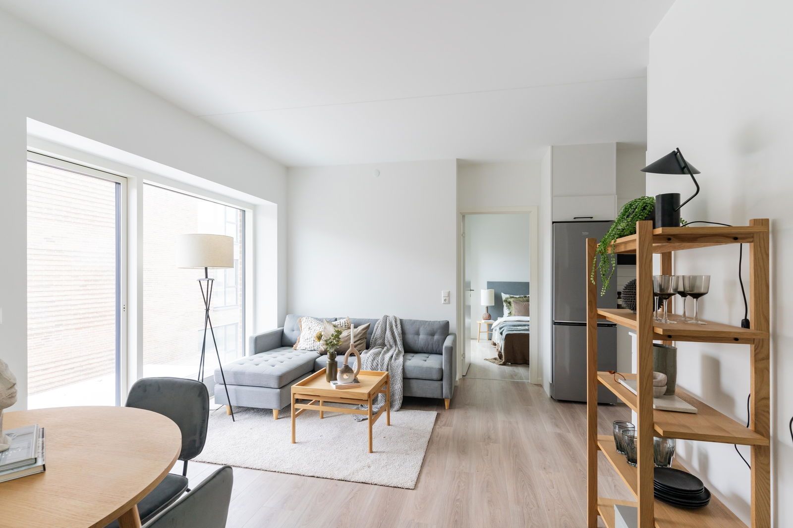 Boligerne er moderne med store vinduespartier, eget køkken og bad samt depotrum i kælderen.