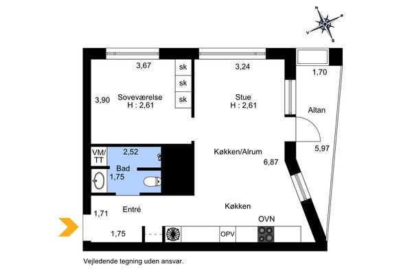 2 værelses lejlighed på 68 m²
