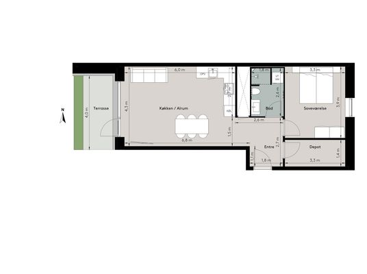 Velindrettet og egen terrasse