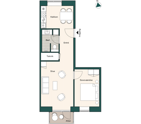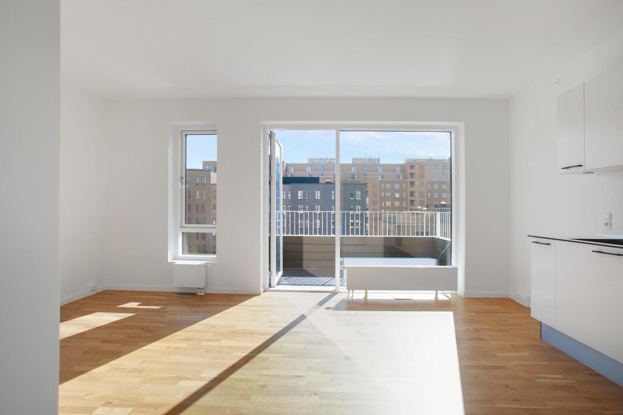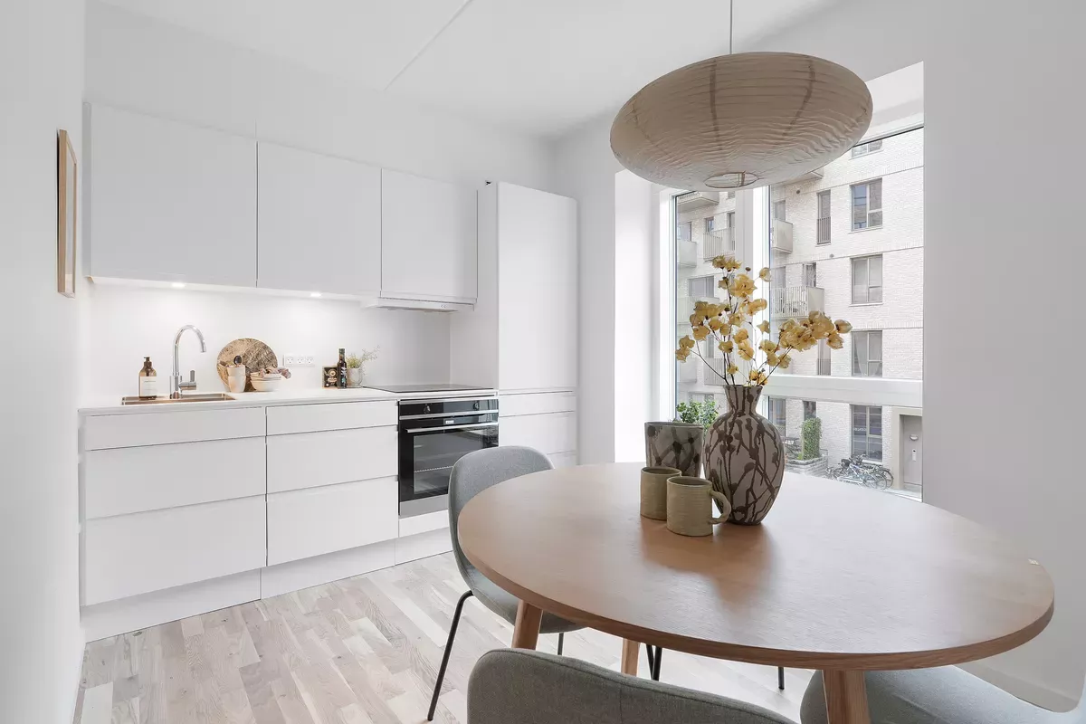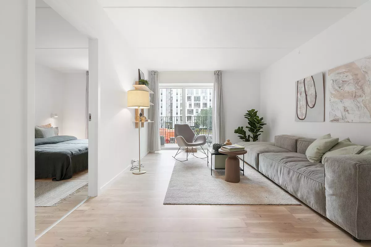 Om boligen: Denne moderne 2 værelses lejlighed byder dig først velkommen i en entré, med mulighed for at hænge overtøjet. Fra entréen træder du ind i det lyse, åbne køkken-alrum, hvor det elegante, hvide Invita-køkken står i flot kontrast til de varme egetræsparketgulve med gulvvarme. Køkkenet er udstyret med alt i moderne hårde hvidevarer, herunder kogeplade, køle-/fryseskab, indbygningsovn og opvaskemaskine. Det dejlige, lyse alrum giver mulighed for at indrette sig både med en spiseafdeling samt et hyggeligt stueområde. Fra alrummet er der direkte adgang til en dejlig, sydvendt altan, hvor du kan nyde solen og det gode vejr med et glas koldt at drikke eller en varm kop kaffe. Soveværelset er praktisk indrettet med indbyggede skabe og giver god plads til både seng og opbevaring. Badeværelset er indrettet med flotte, store grå fliser og en separat bruseniche. Der er naturligvis også plads til vaskemaskine og tørretumbler. Ejendommen: Solhusene er en arkitektonisk perle, hvor bygningernes varierende højder elegant skråner mod en charmerende, grøn gårdhave. Ejendommen er tegnet af arkitektfirmaet Mangor & Nagel og byder på 88 unikke boliger, der alle emmer af lys og luft. I hjertet af gårdhaven, mellem de to bebyggelser, finder du et idyllisk orangeri – et skønt samlingspunkt, der er skabt med henblik på at fremme fællesskab, trivsel og gode stunder blandt beboerne. Her er plads til både afslapning og sociale oplevelser. Der er parkeringskælder under ejendommen, hvor man har mulighed for at leje en p-plads. Solhusene står til at blive DGNB guld-certificeret. Det er din garanti for at flytte ind i en ejendom, hvor der er tænkt på miljøet samt din sundhed og trivsel. Her er blandt andet anvendt miljøvenlige materialer og sørget for et godt indeklima. Området: Boligerne i Solhusene ligger praktisk bynært, men med naturen og grønne omgivelser lige i nærheden. Her får du en nem og praktisk hverdag, med kort afstand til både skole, daginstitutioner, offentlig transport og indkøbsmuligheder. Blandt andet ligger nærmeste supermarked lige rundt om hjørnet i nabobygningen. Tilmed ligger tilkørslen til Hillerødmotorvejen blot ca. 2 minutters kørsels væk, så du er dermed godt forbundet til det hele, uanset om det er med bilen eller S-toget du skal afsted. Fra Bagsværd station er der kun omkring 30 minutter ind til Københavns H. Gå- og løbeturen kan for eksempel nydes rundt om Bagsværd Sø, eller Hareskoven, hvor roen sænker sig i de smukkeste grønne omgivelser. <brBemærk venligst, at billederne kan være fra en anden bolig, hvorfor indretning, beliggenhed og udsigt kan variere. Materialevalg og kvalitet er den samme for alle boliger i ejendommen. Se plantegningen for indretningen af denne bolig. OBS. Vi gør opmærksom på at boligen ikke kan lejes ud til delebolig.