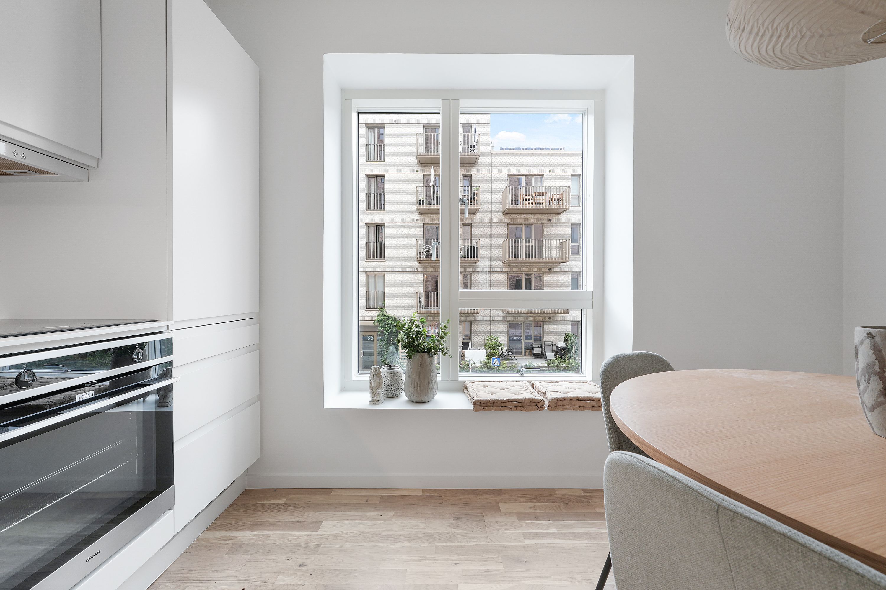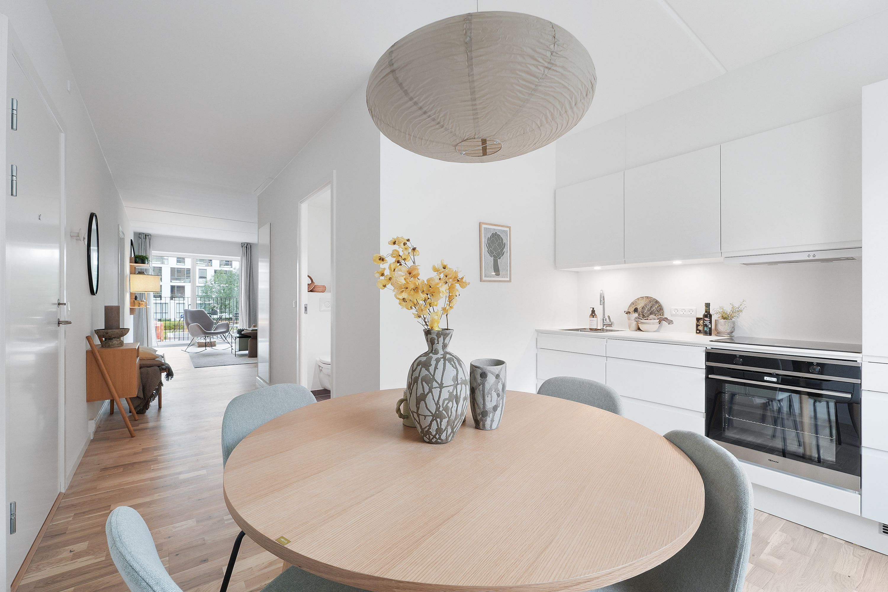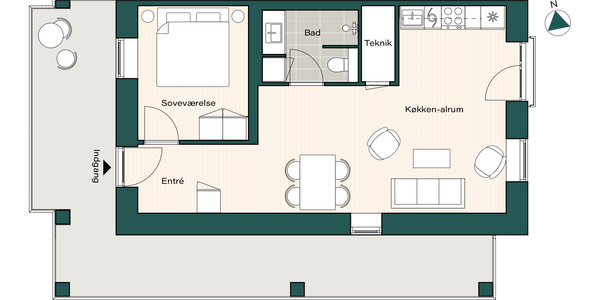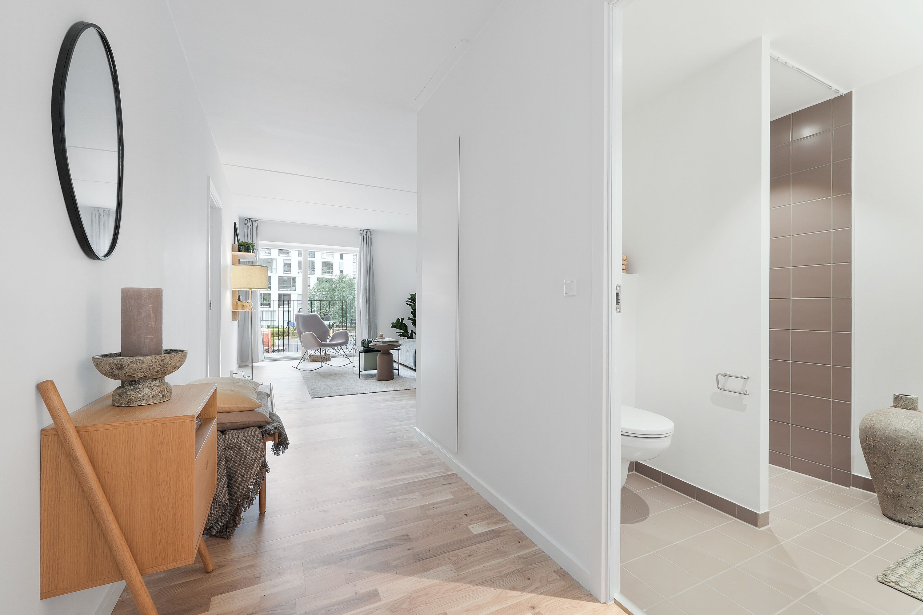 Om boligen: Denne moderne 2 værelses lejlighed byder dig først velkommen i en entré, med mulighed for at hænge overtøjet. Fra entréen træder du ind i det lyse, åbne køkken-alrum, hvor det elegante, hvide Invita-køkken står i flot kontrast til de varme egetræsparketgulve med gulvvarme. Køkkenet er udstyret med alt i moderne hårde hvidevarer, herunder kogeplade, køle-/fryseskab, indbygningsovn og opvaskemaskine. Det dejlige, lyse alrum giver mulighed for at indrette sig både med en spiseafdeling samt et hyggeligt stueområde. Fra alrummet er der direkte adgang til en dejlig, sydvendt altan, hvor du kan nyde solen og det gode vejr med et glas koldt at drikke eller en varm kop kaffe. Soveværelset er praktisk indrettet med indbyggede skabe og giver god plads til både seng og opbevaring. Badeværelset er indrettet med flotte, store grå fliser og en separat bruseniche. Der er naturligvis også plads til vaskemaskine og tørretumbler. Ejendommen: Solhusene er en arkitektonisk perle, hvor bygningernes varierende højder elegant skråner mod en charmerende, grøn gårdhave. Ejendommen er tegnet af arkitektfirmaet Mangor & Nagel og byder på 88 unikke boliger, der alle emmer af lys og luft. I hjertet af gårdhaven, mellem de to bebyggelser, finder du et idyllisk orangeri – et skønt samlingspunkt, der er skabt med henblik på at fremme fællesskab, trivsel og gode stunder blandt beboerne. Her er plads til både afslapning og sociale oplevelser. Der er parkeringskælder under ejendommen, hvor man har mulighed for at leje en p-plads. Solhusene står til at blive DGNB guld-certificeret. Det er din garanti for at flytte ind i en ejendom, hvor der er tænkt på miljøet samt din sundhed og trivsel. Her er blandt andet anvendt miljøvenlige materialer og sørget for et godt indeklima. Området: Boligerne i Solhusene ligger praktisk bynært, men med naturen og grønne omgivelser lige i nærheden. Her får du en nem og praktisk hverdag, med kort afstand til både skole, daginstitutioner, offentlig transport og indkøbsmuligheder. Blandt andet ligger nærmeste supermarked lige rundt om hjørnet i nabobygningen. Tilmed ligger tilkørslen til Hillerødmotorvejen blot ca. 2 minutters kørsels væk, så du er dermed godt forbundet til det hele, uanset om det er med bilen eller S-toget du skal afsted. Fra Bagsværd station er der kun omkring 30 minutter ind til Københavns H. Gå- og løbeturen kan for eksempel nydes rundt om Bagsværd Sø, eller Hareskoven, hvor roen sænker sig i de smukkeste grønne omgivelser. <brBemærk venligst, at billederne kan være fra en anden bolig, hvorfor indretning, beliggenhed og udsigt kan variere. Materialevalg og kvalitet er den samme for alle boliger i ejendommen. Se plantegningen for indretningen af denne bolig. OBS. Vi gør opmærksom på at boligen ikke kan lejes ud til delebolig.